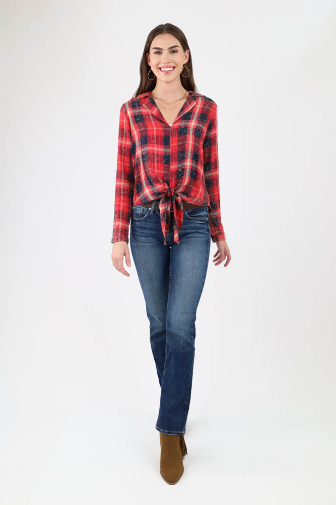 This plaid tie front shirt effortlessly blends classic plaid patterns with a trendy tie-front detail, making it a perfect choice for a stylish and casual look. Whether you're heading to a weekend brunch or a casual outing, this shirt promises to add a touch of charm and sophistication to your ensemble, ensuring you stand out in style.