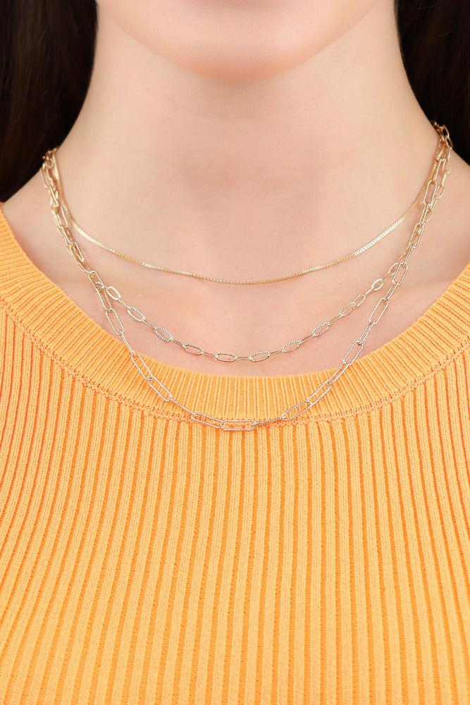 Drape yourself in style with our Triple Layered Chain Necklace! This versatile piece adds a touch of chic sophistication to any outfit, featuring three layers of delicate chains. Whether you're dressing up for a night out or elevating your everyday look, embrace the art of layering and let your style speak volumes!