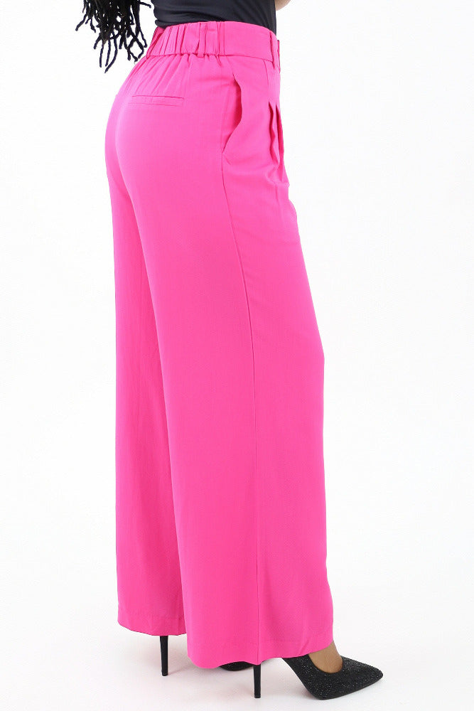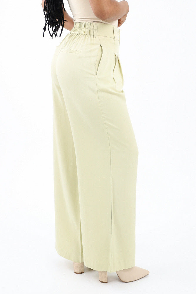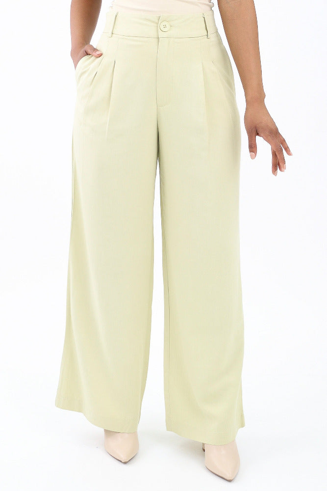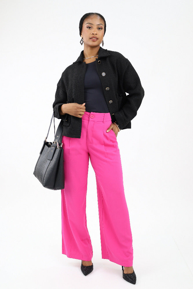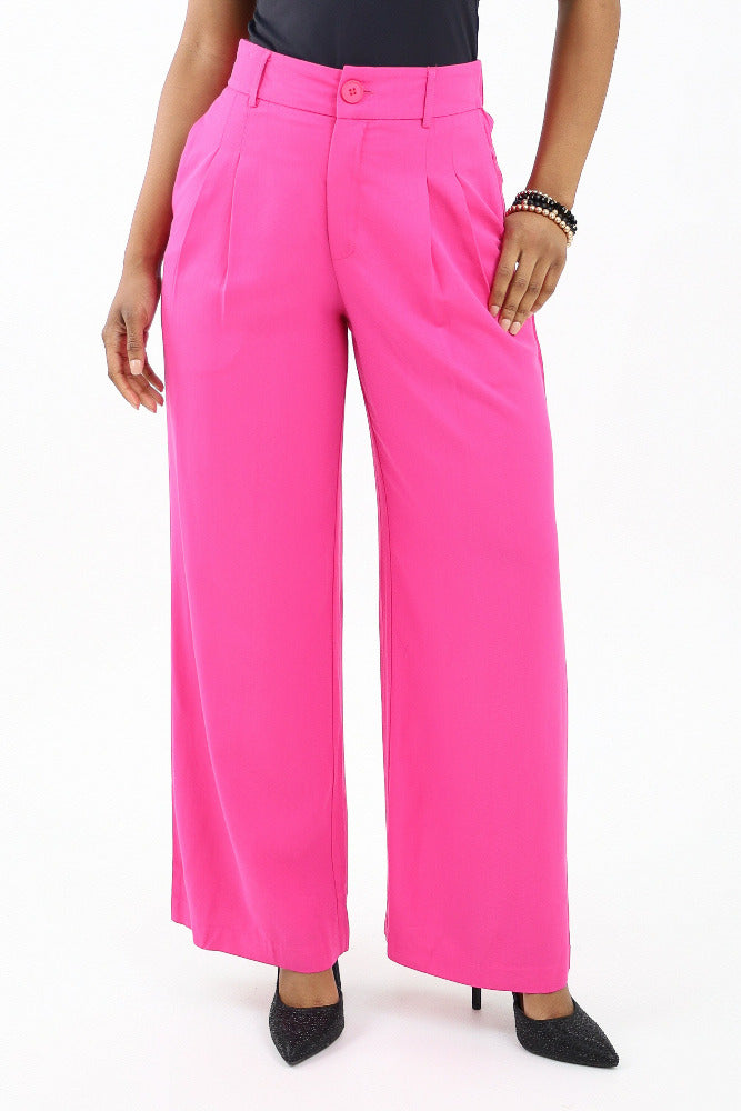 Elevate your business attire with our Wide Leg Pleated Trousers. These high-rise pants feature a pleated waist, belt loops, and practical pockets for a stylish and professional look.