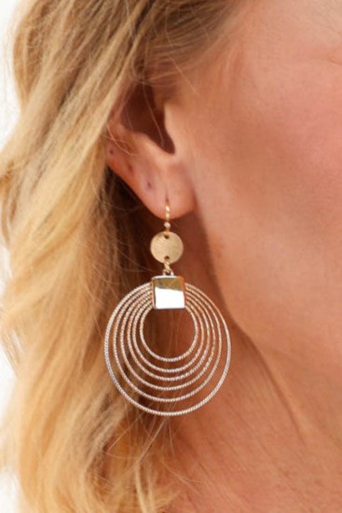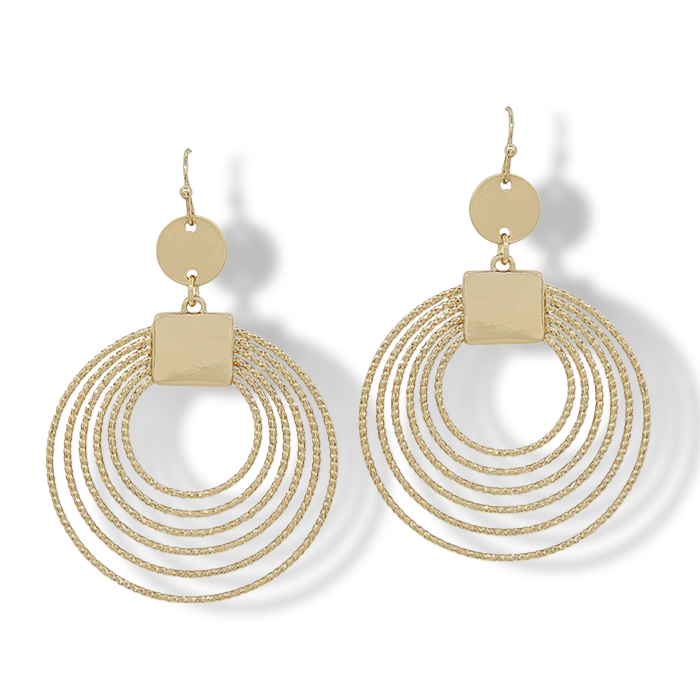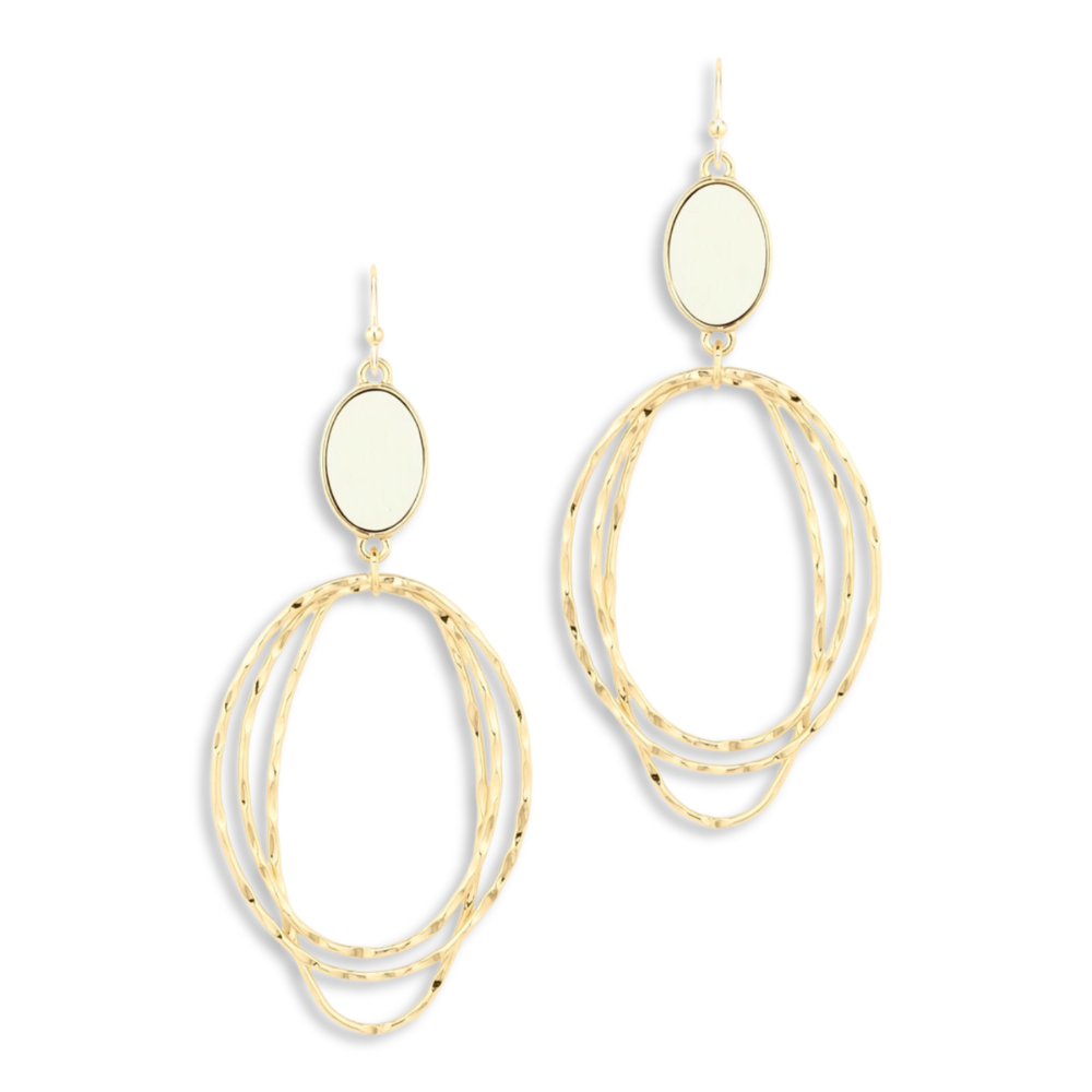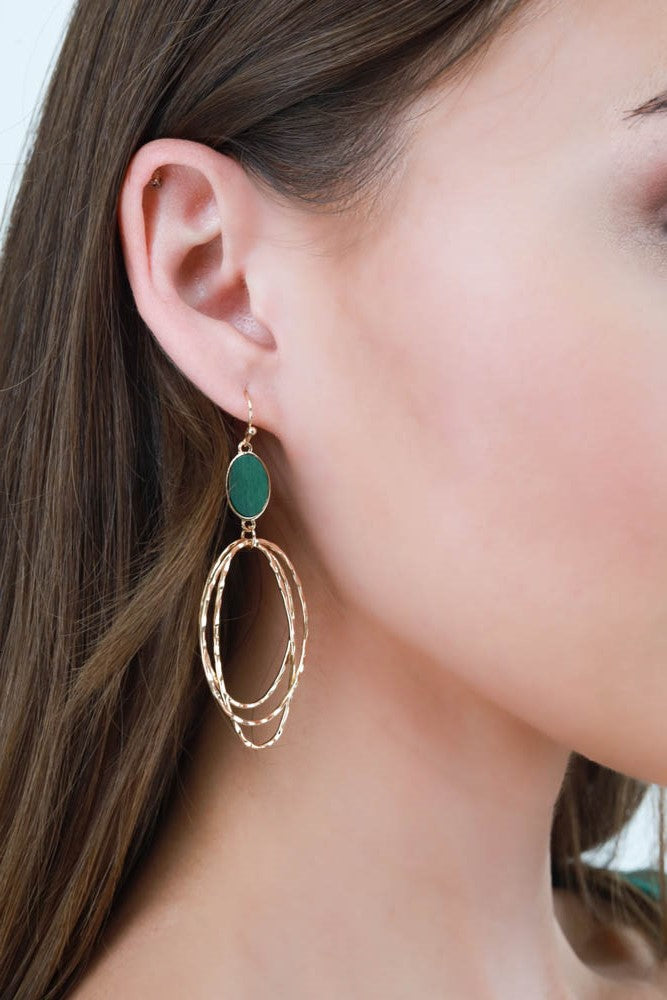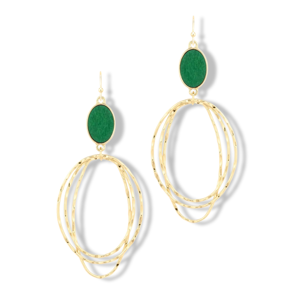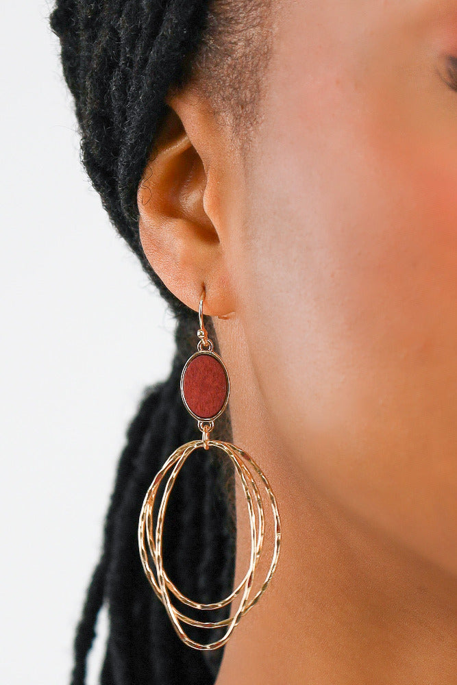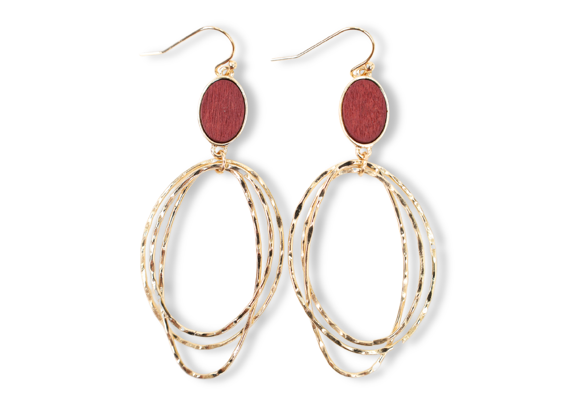Wood Pendant and Layered Gold Ring Drop Earrings