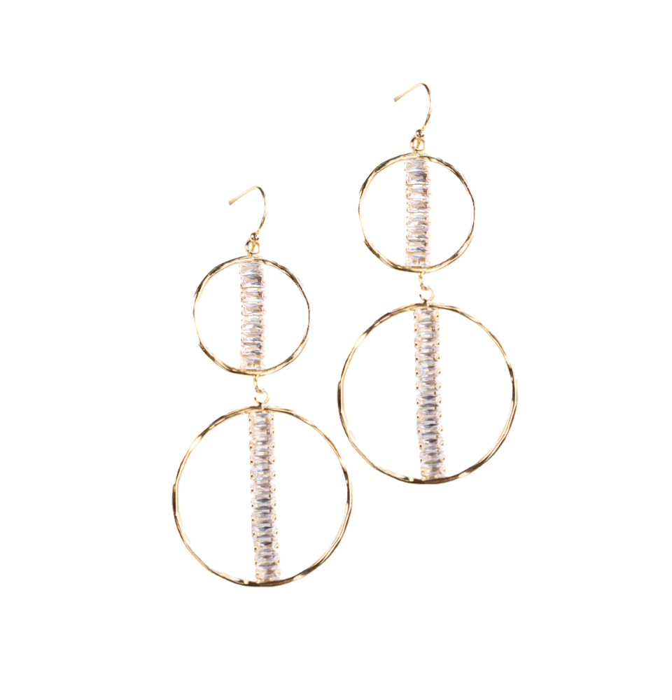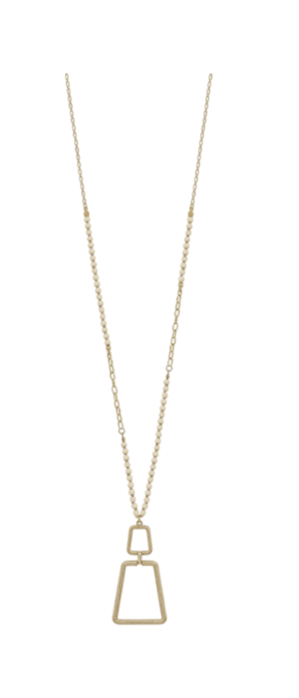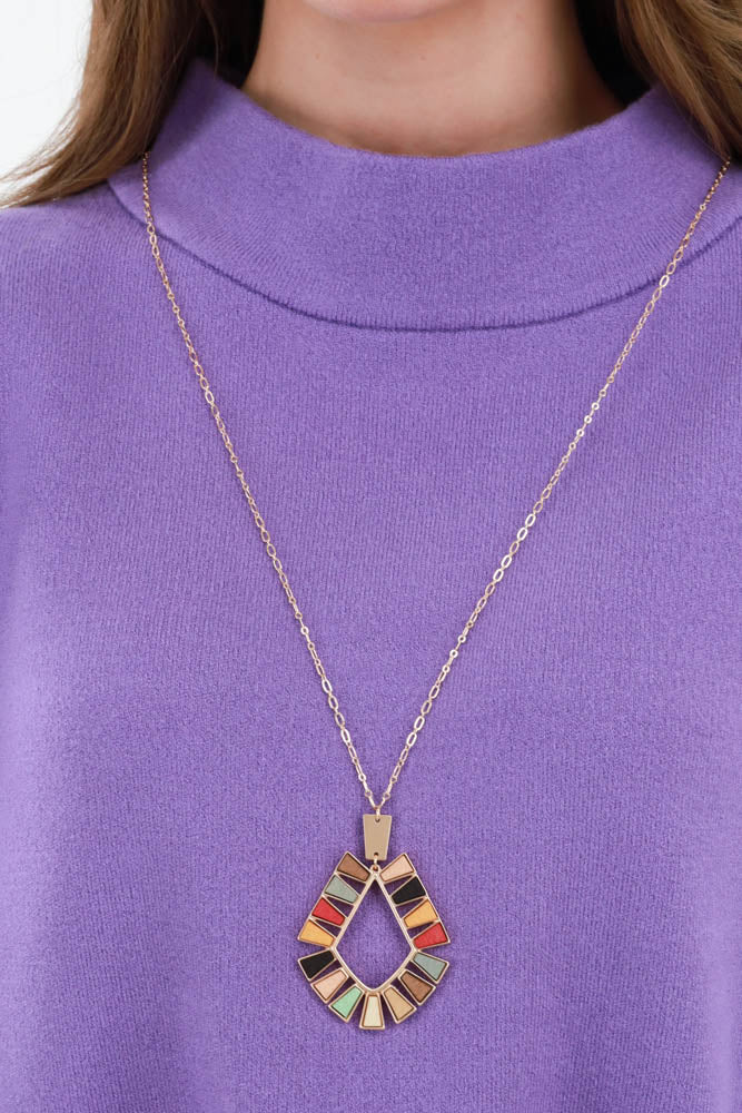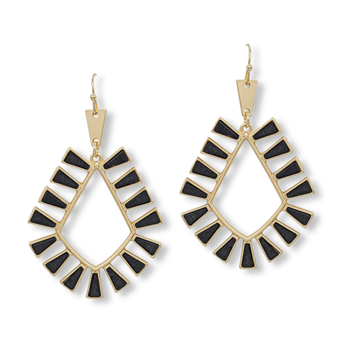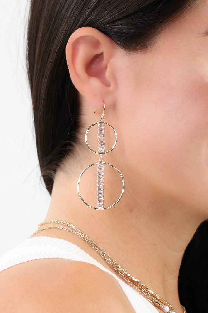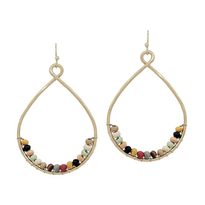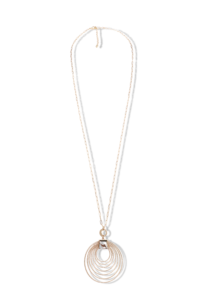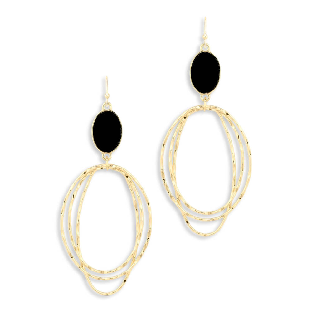 Wood Pendant and Layered Gold Ring Drop Earrings