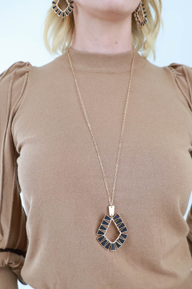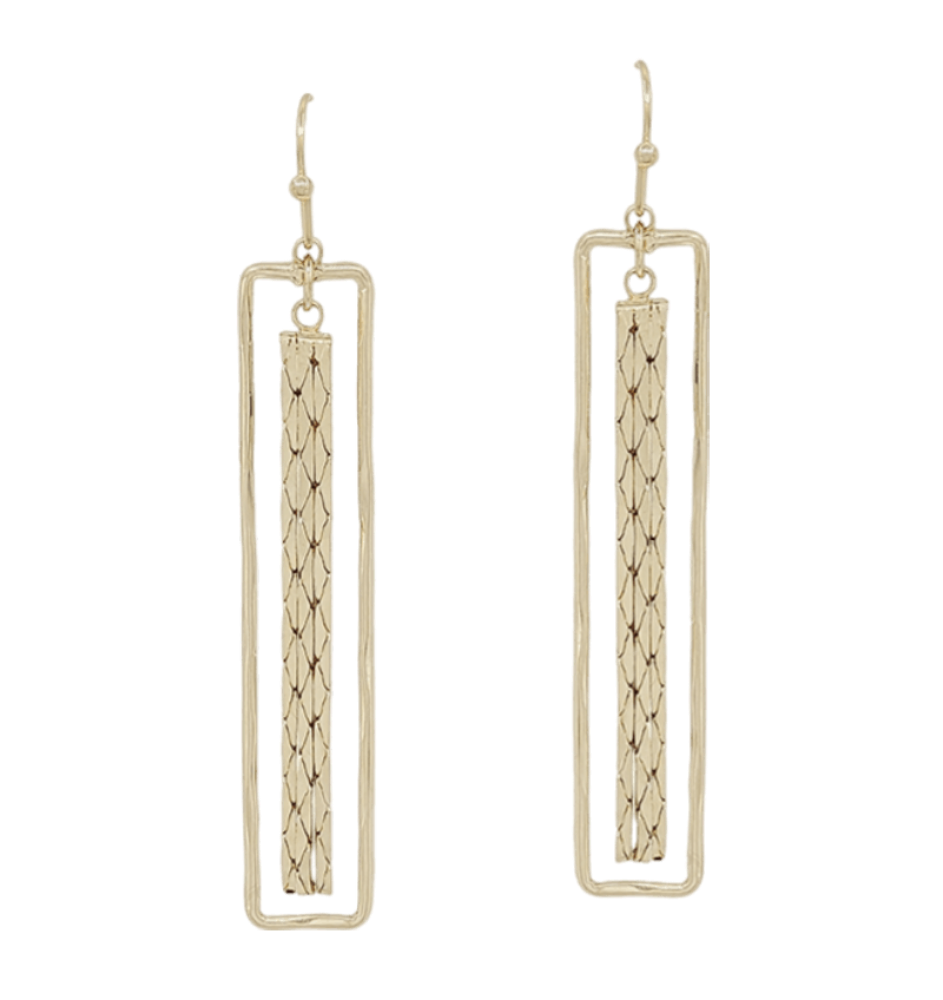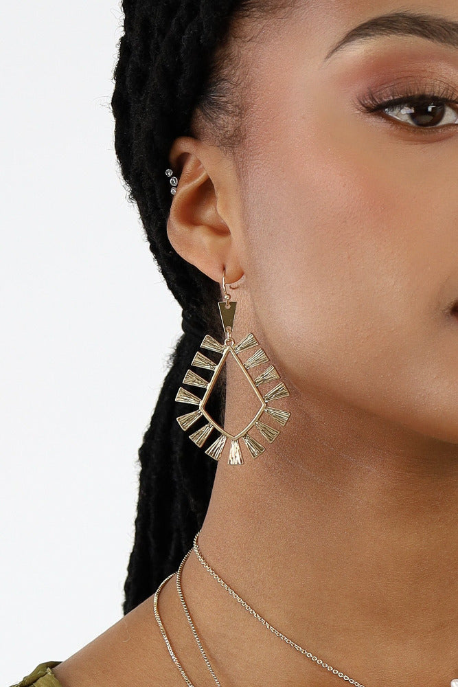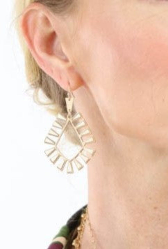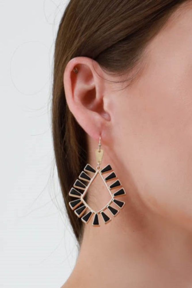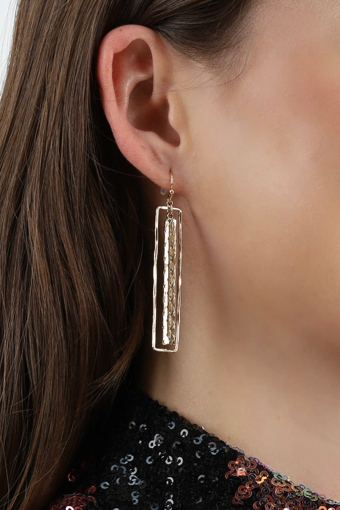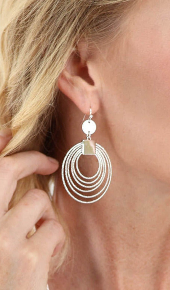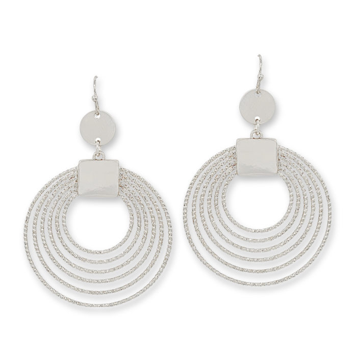 Wood Pendant and Layered Gold Ring Drop Earrings