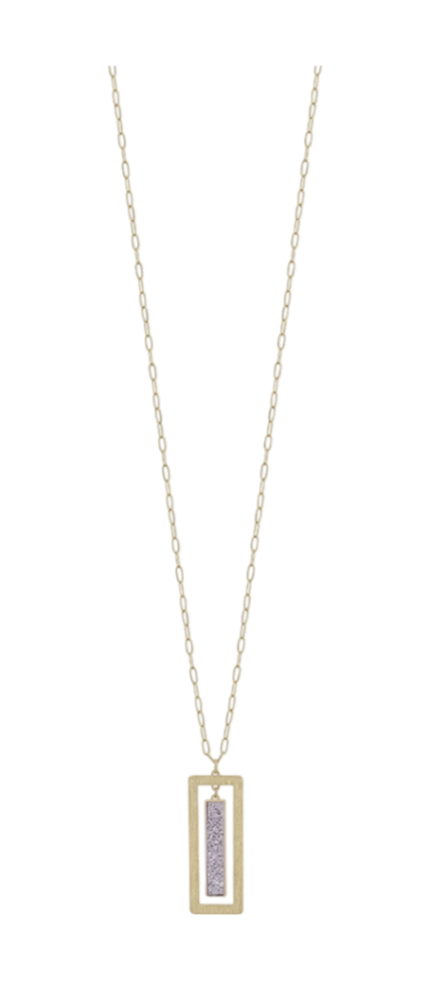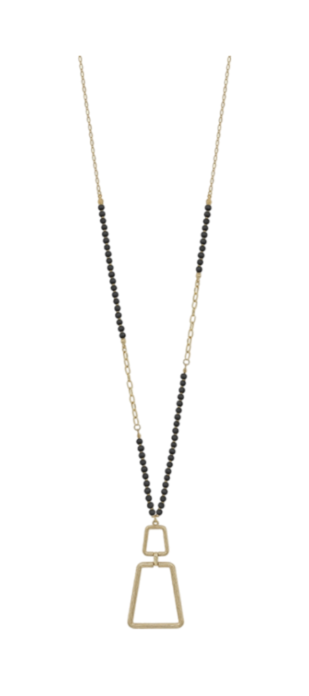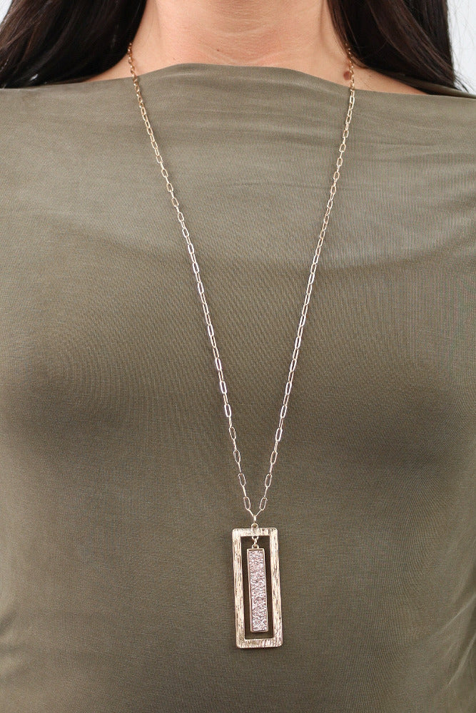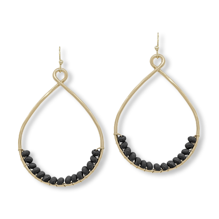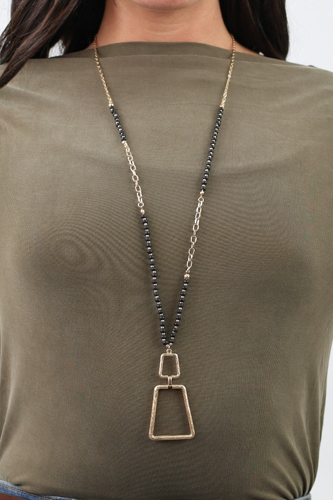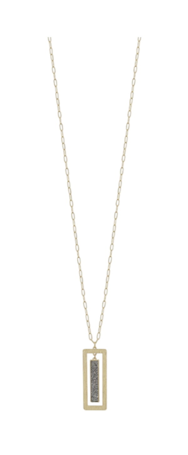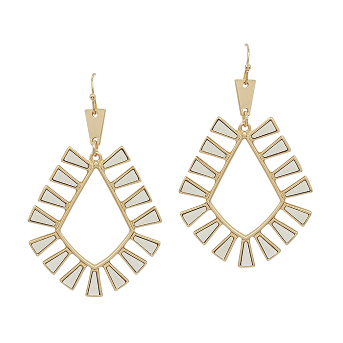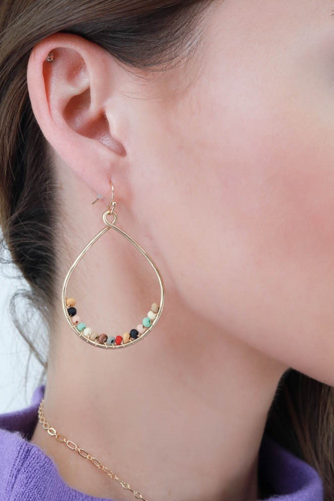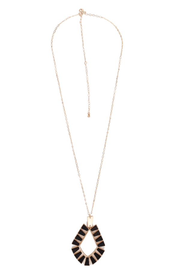 Wood Pendant and Layered Gold Ring Drop Earrings
