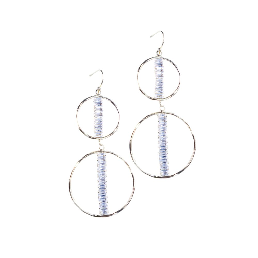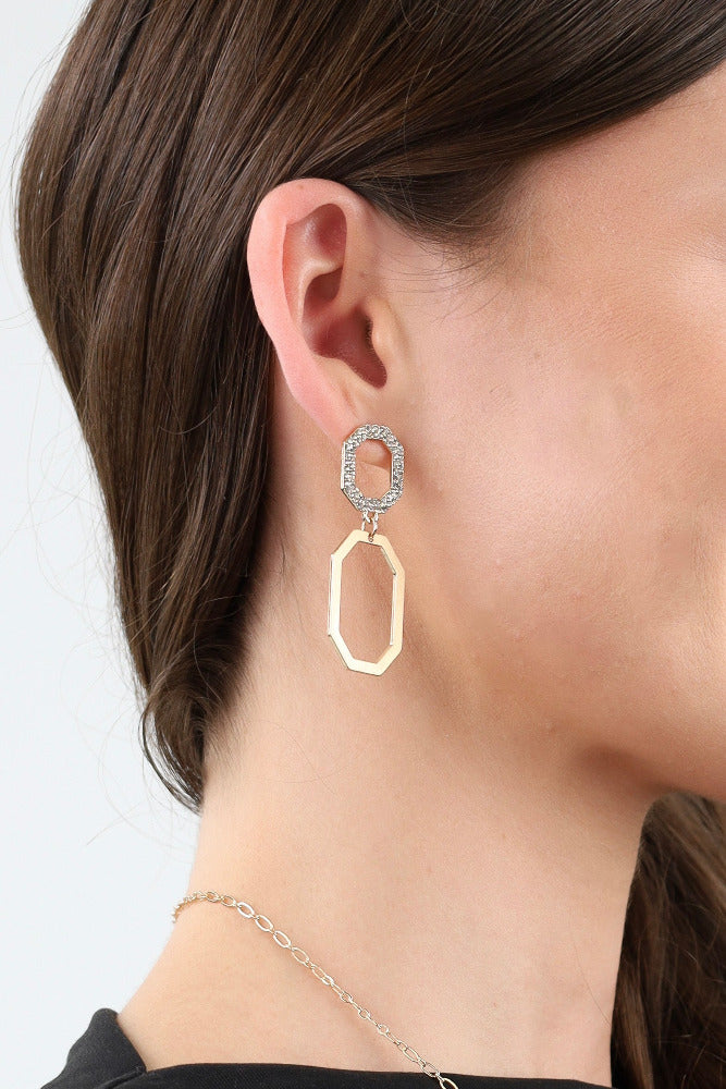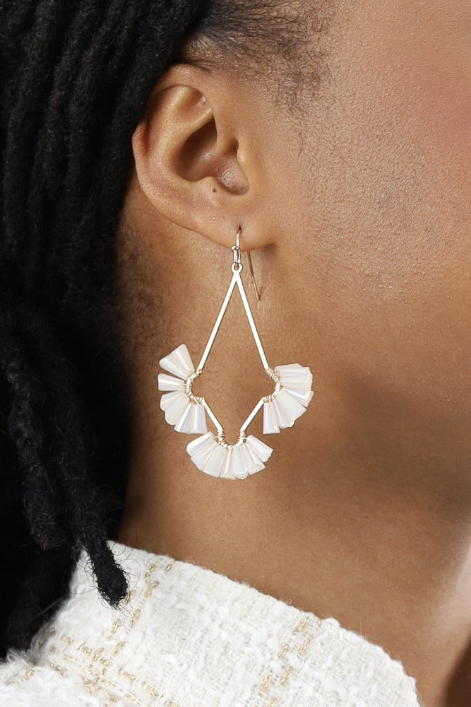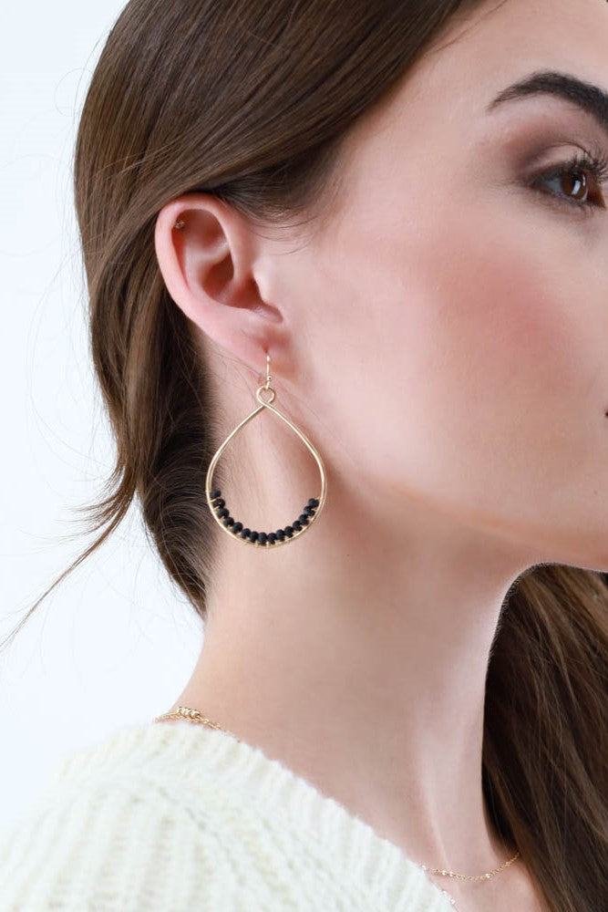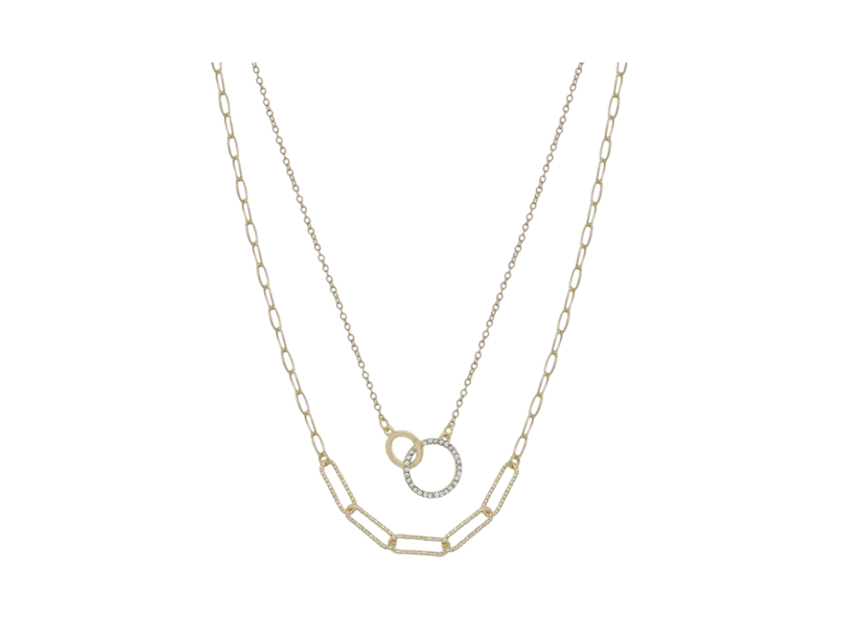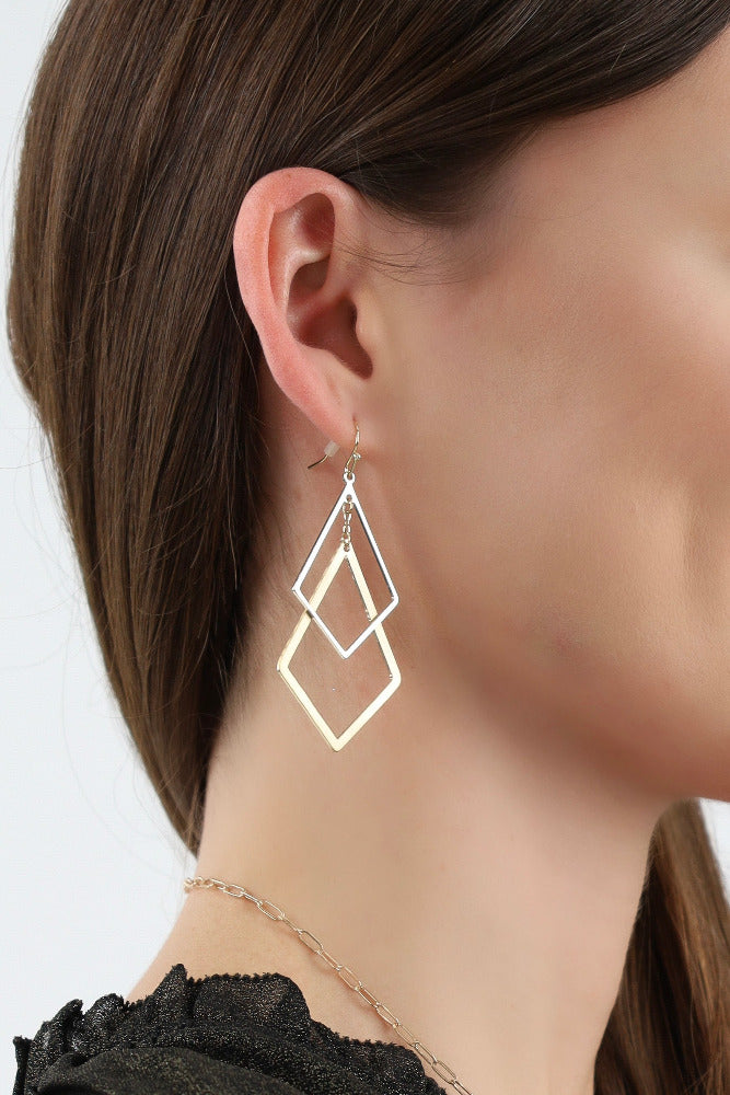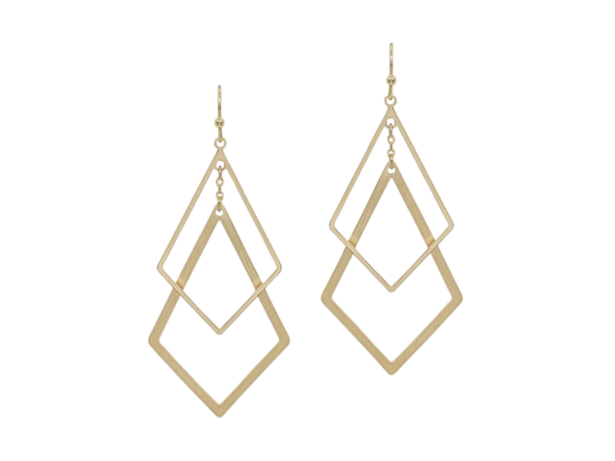Wood Pendant and Layered Gold Ring Drop Earrings