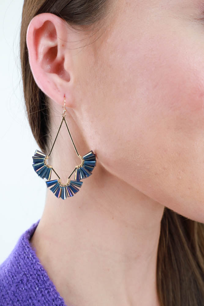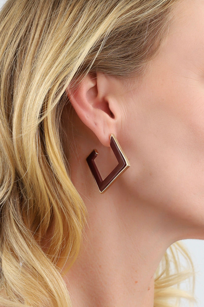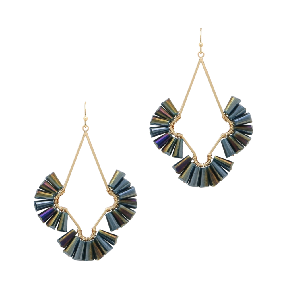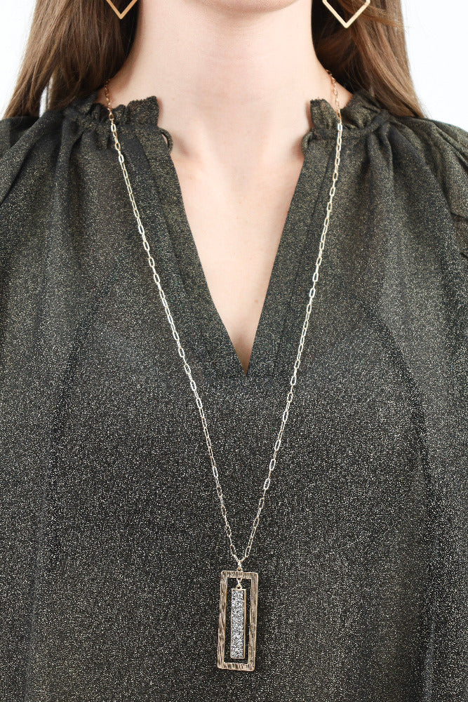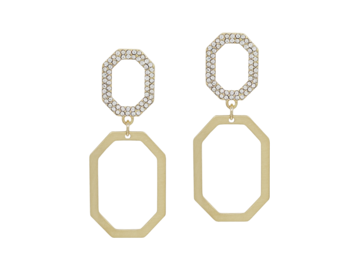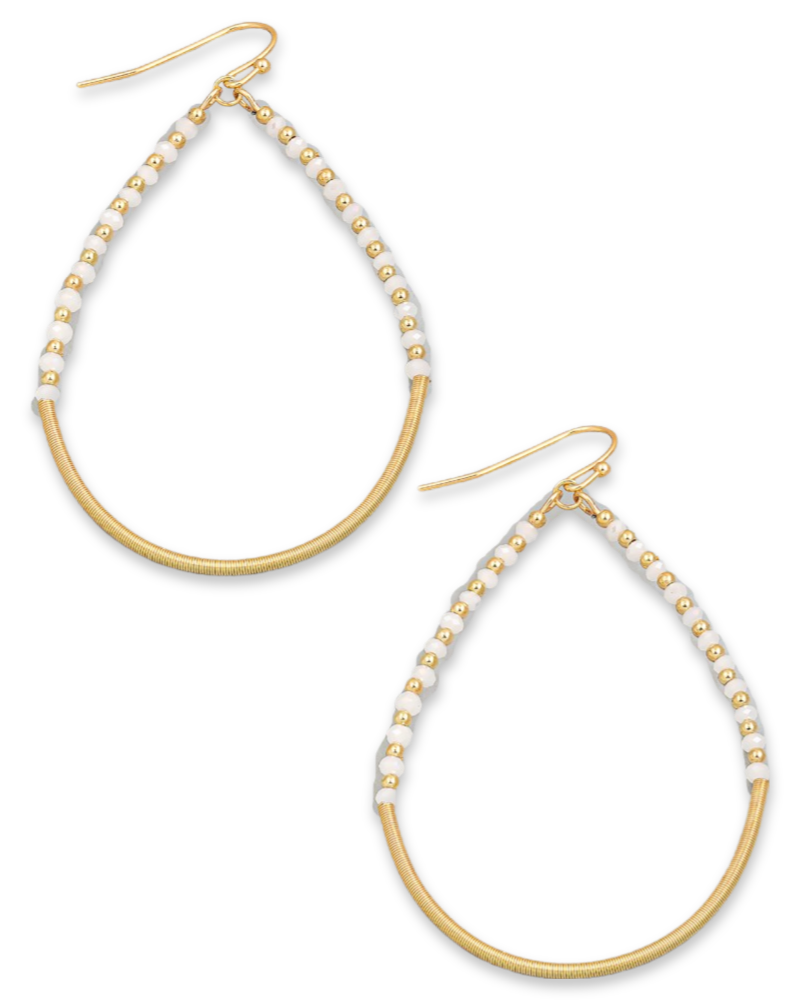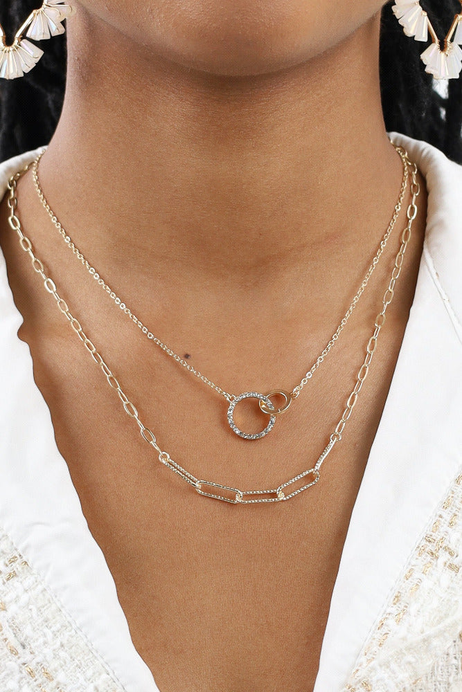 Wood Pendant and Layered Gold Ring Drop Earrings