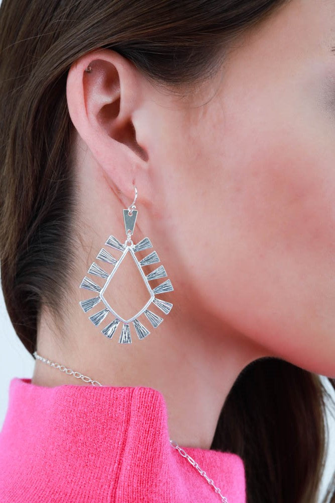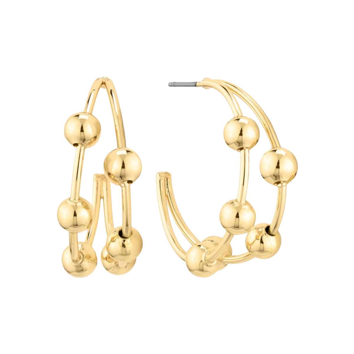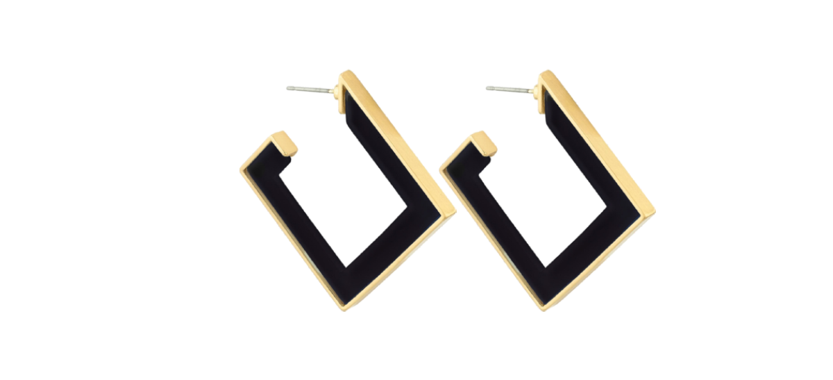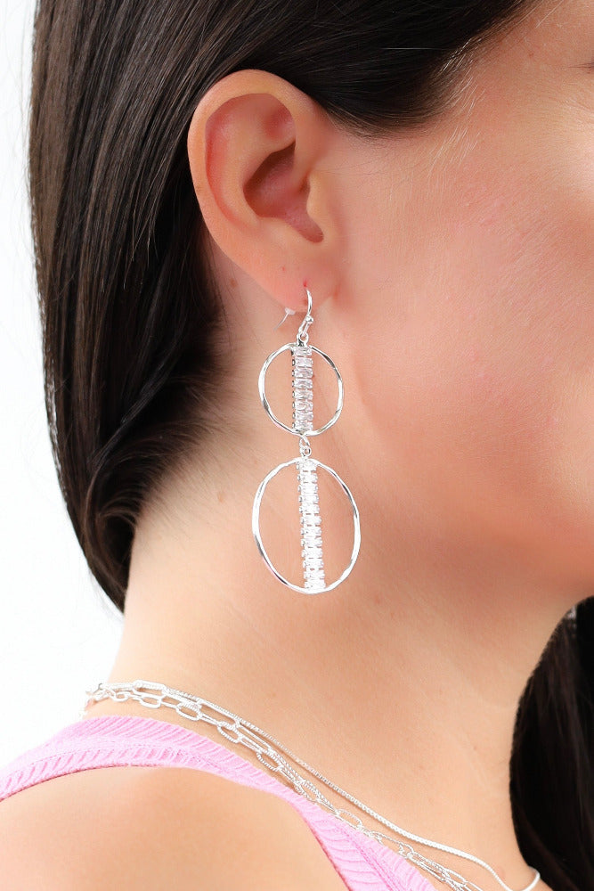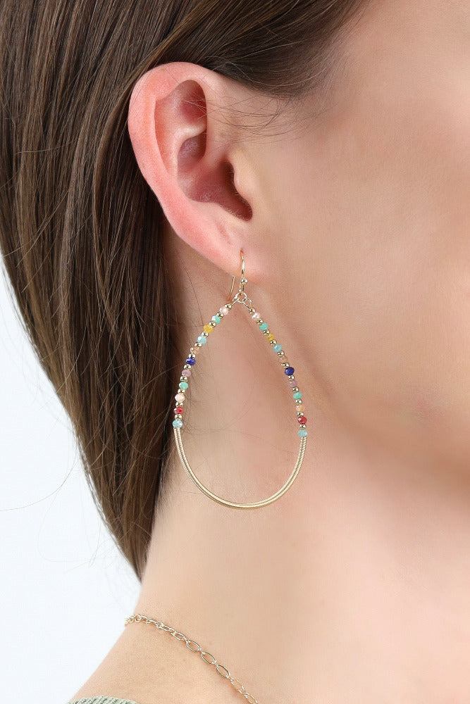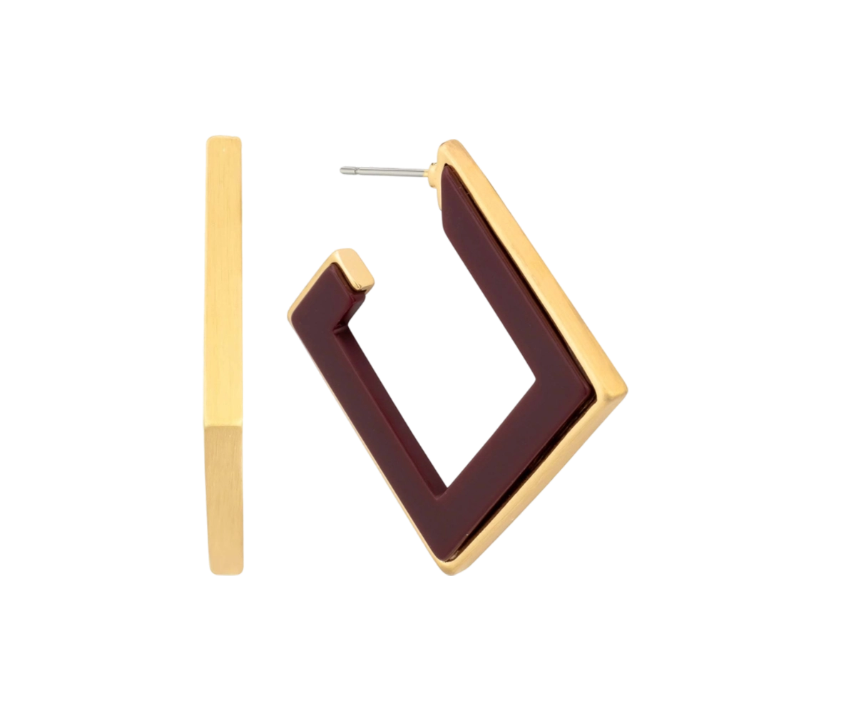 Wood Pendant and Layered Gold Ring Drop Earrings