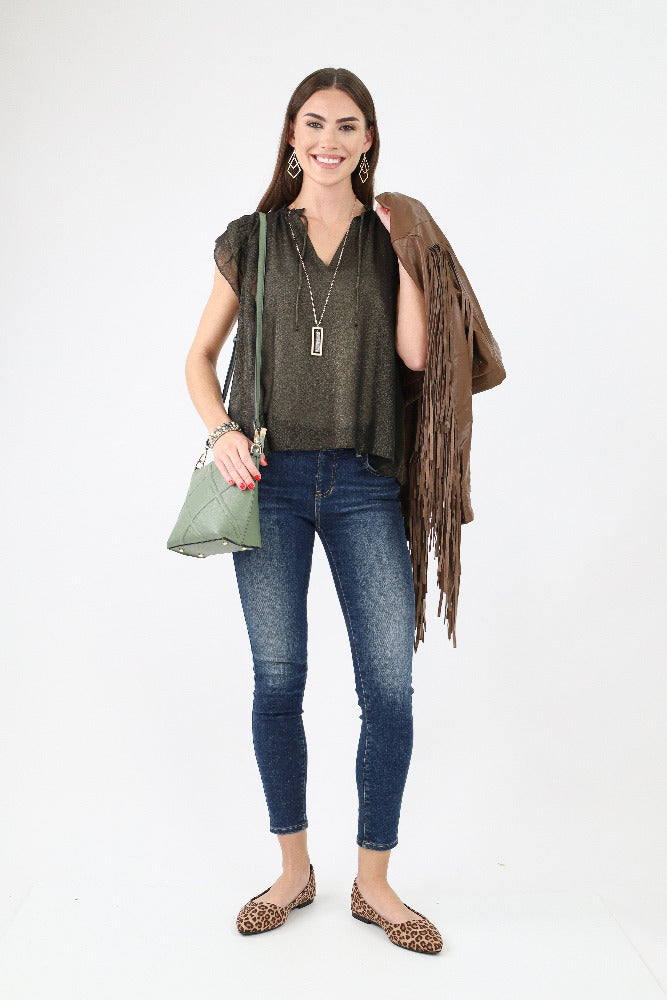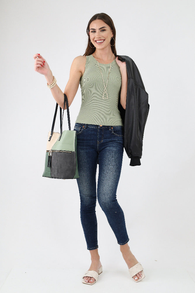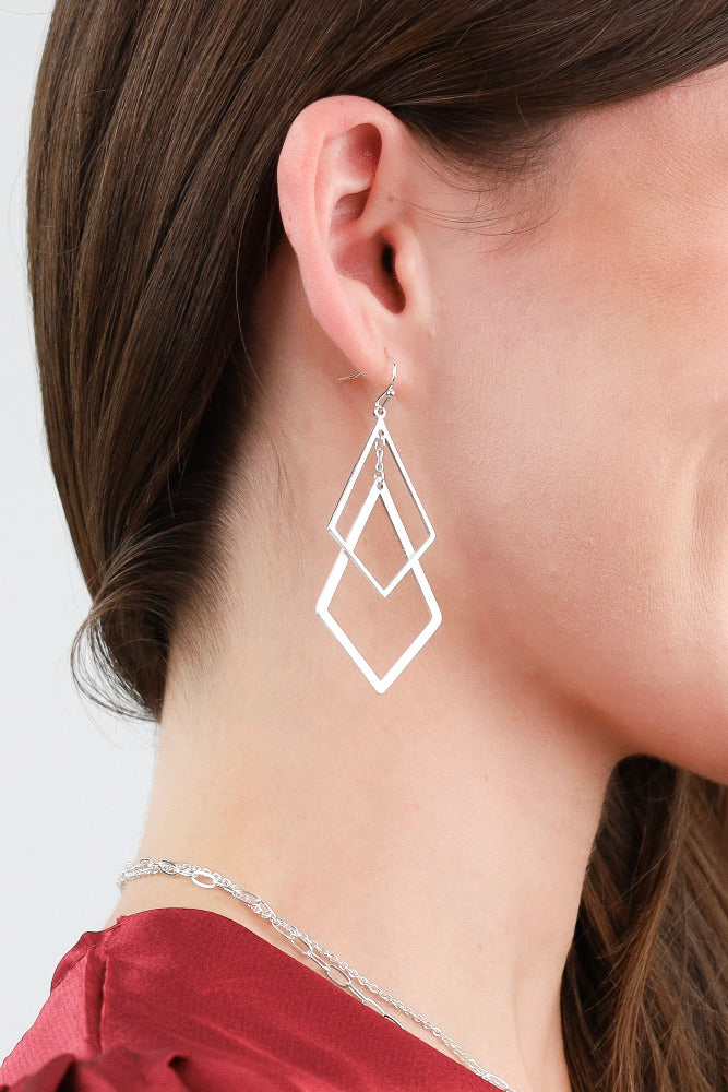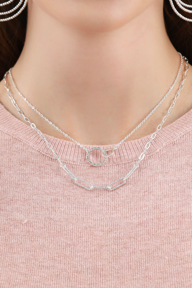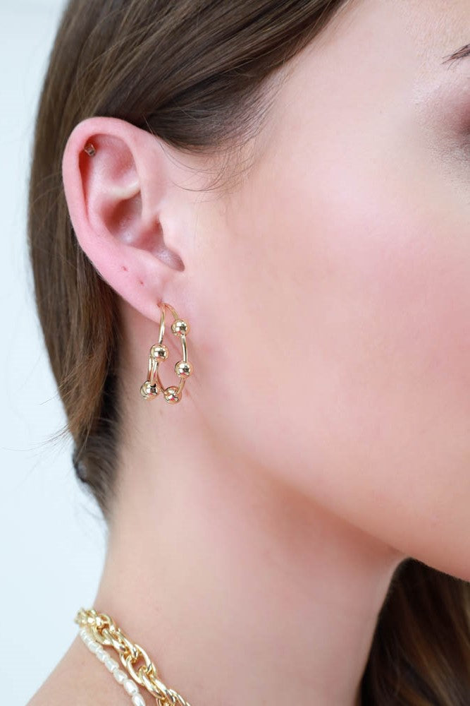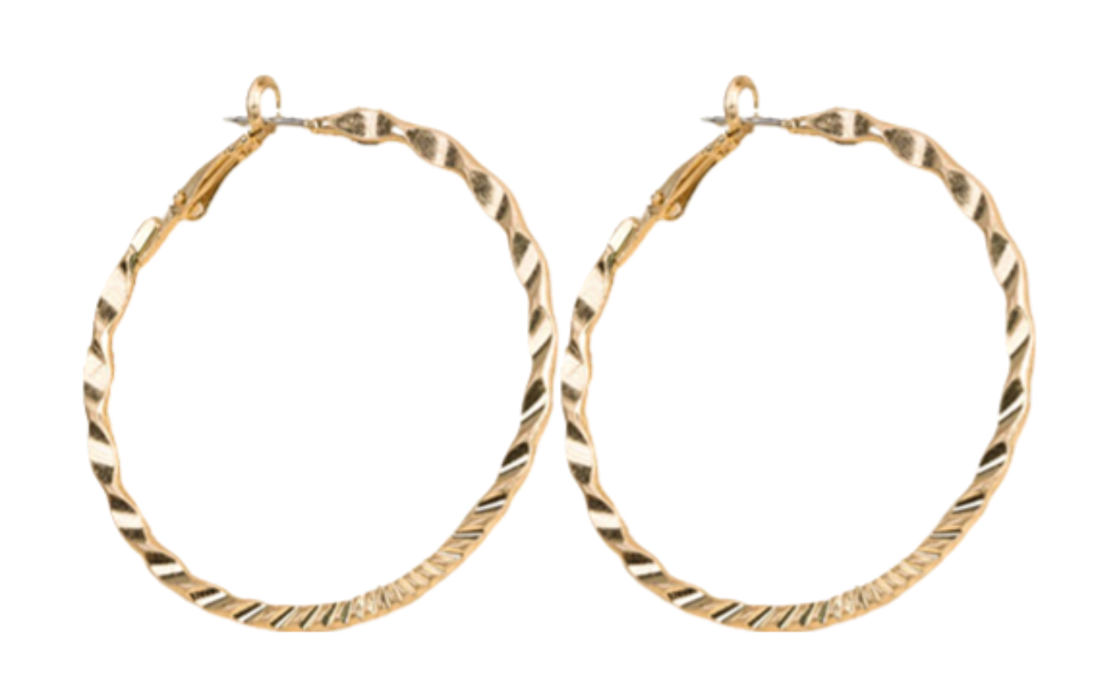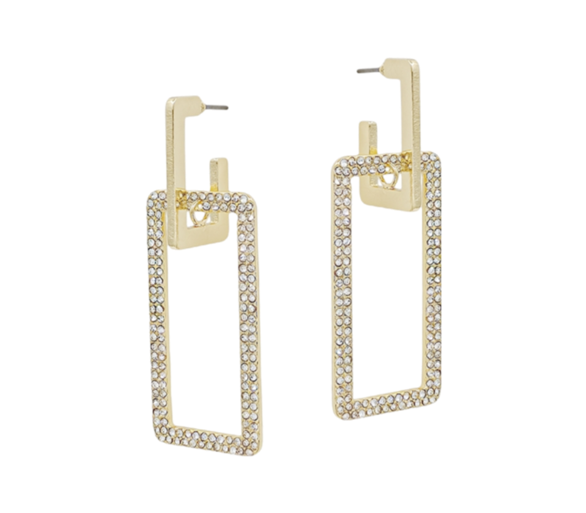Wood Pendant and Layered Gold Ring Drop Earrings
