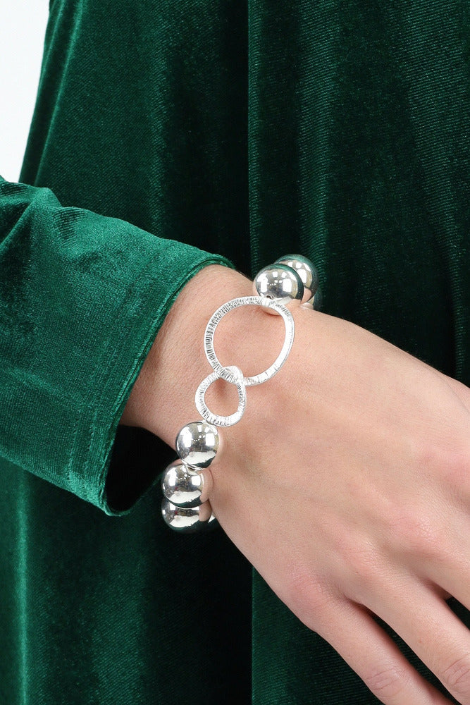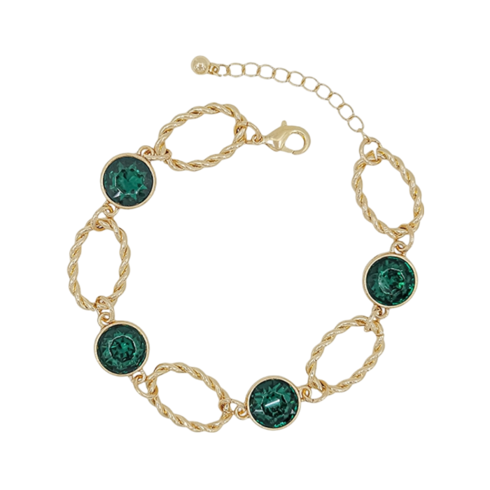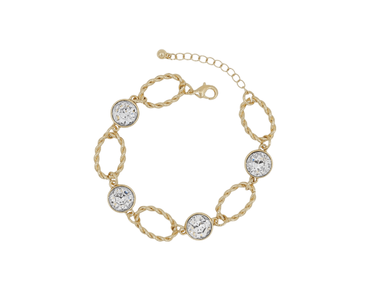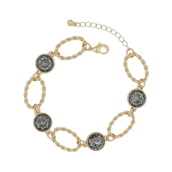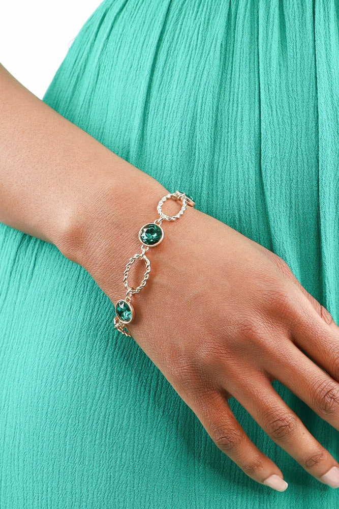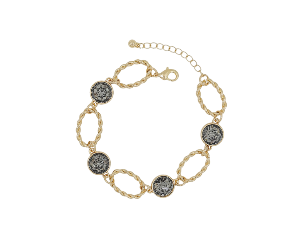 Wood and Crystal Beaded Set of 4 Stretch Bracelets