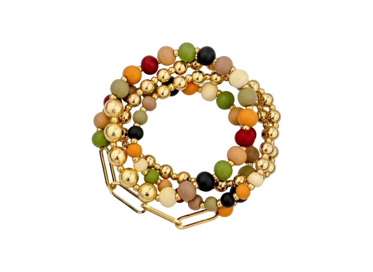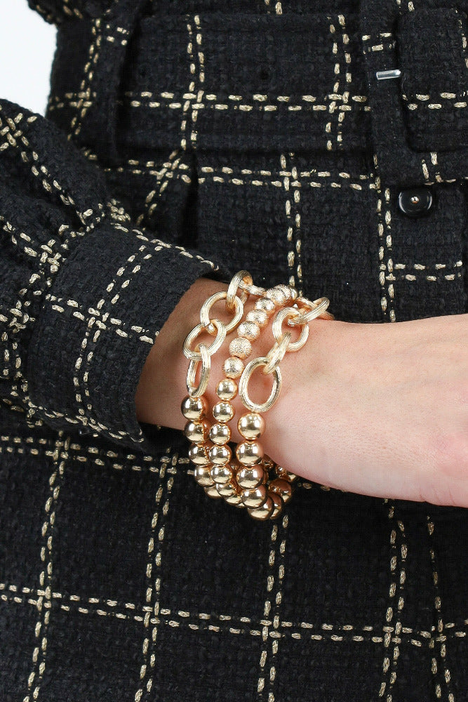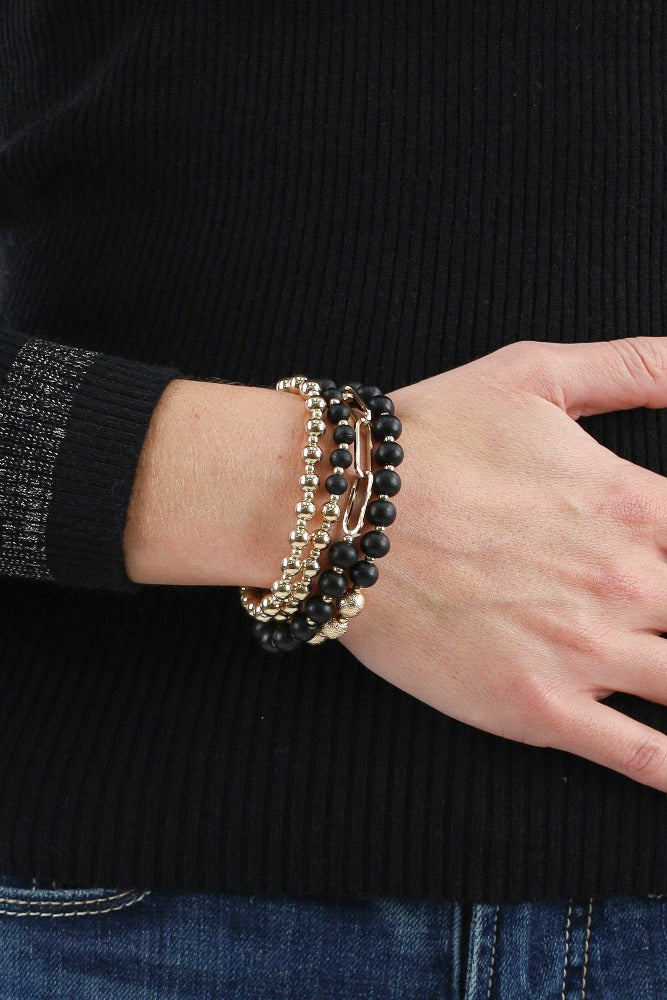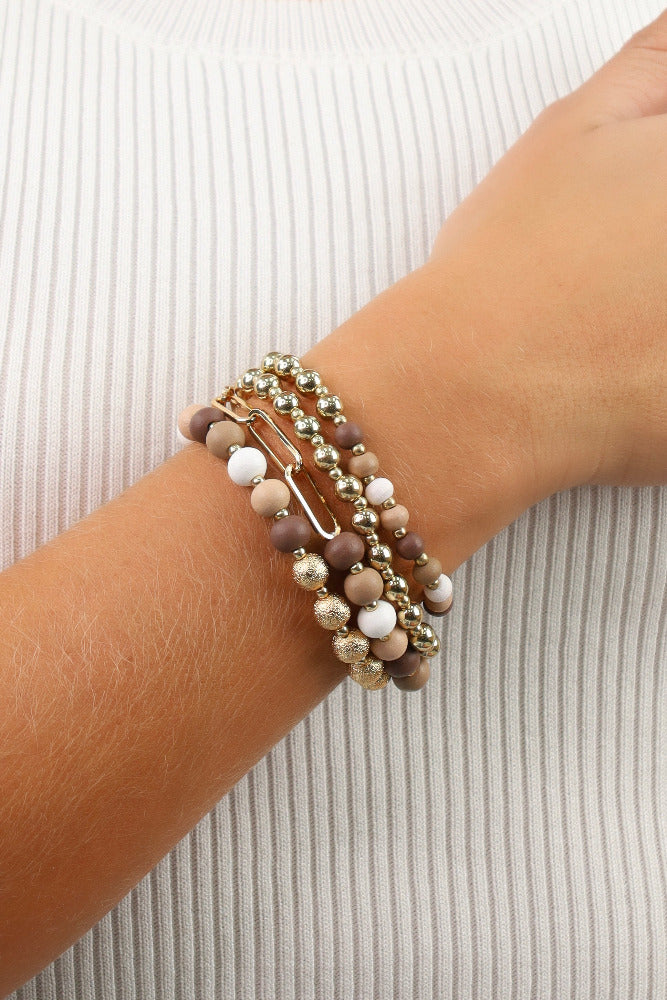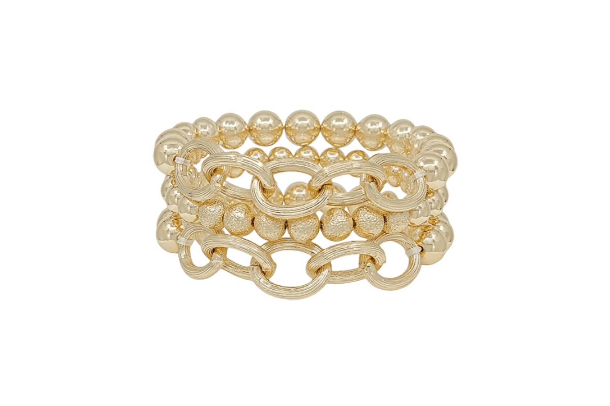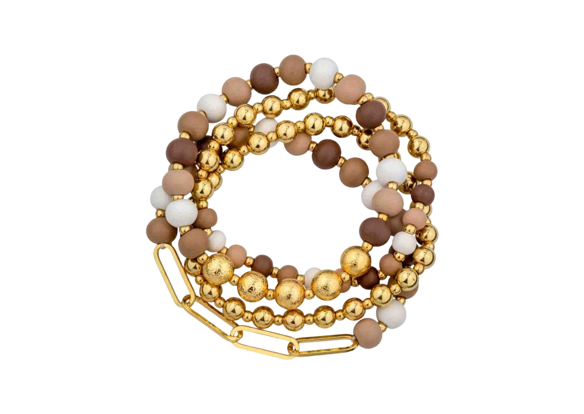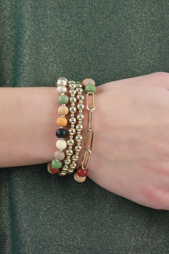 Wood and Gold Chain Set of 4 Stretch Bracelets