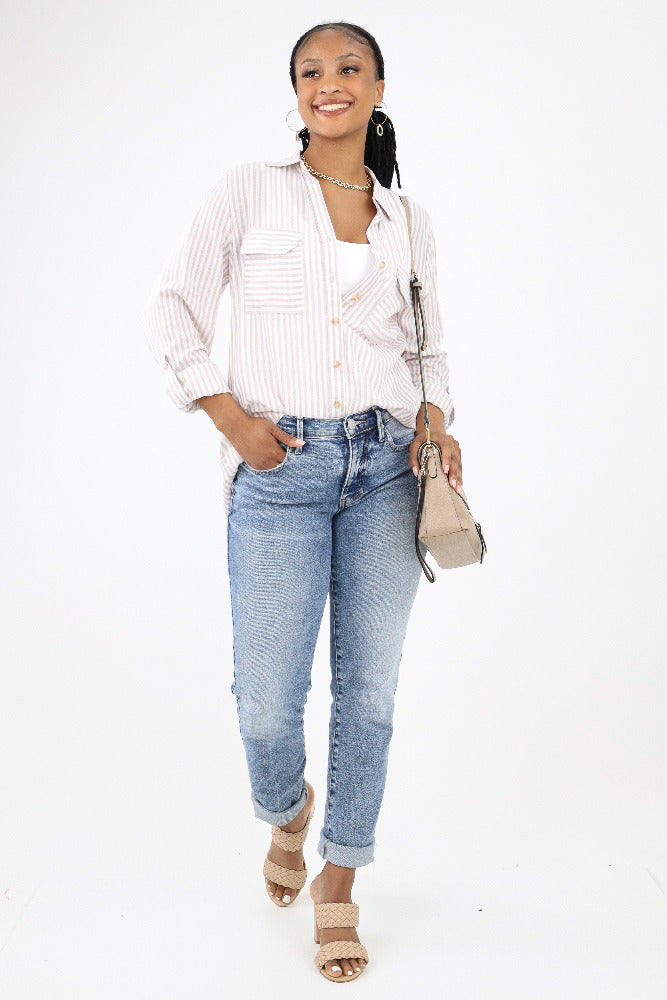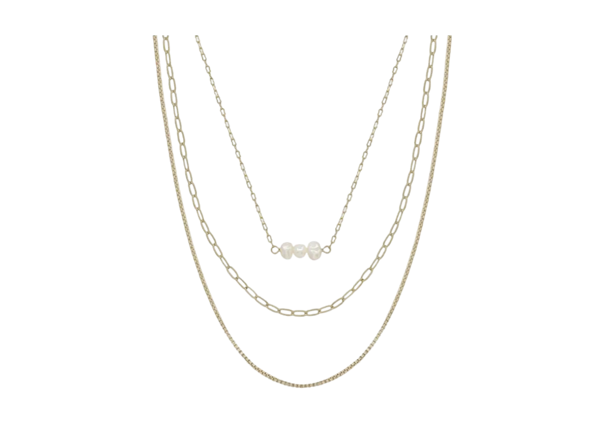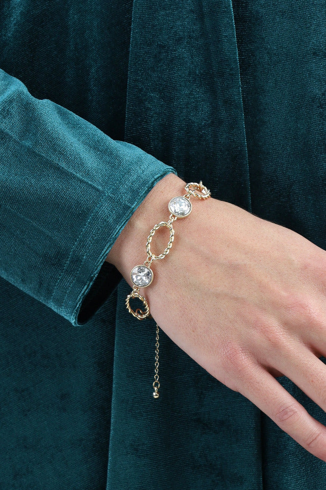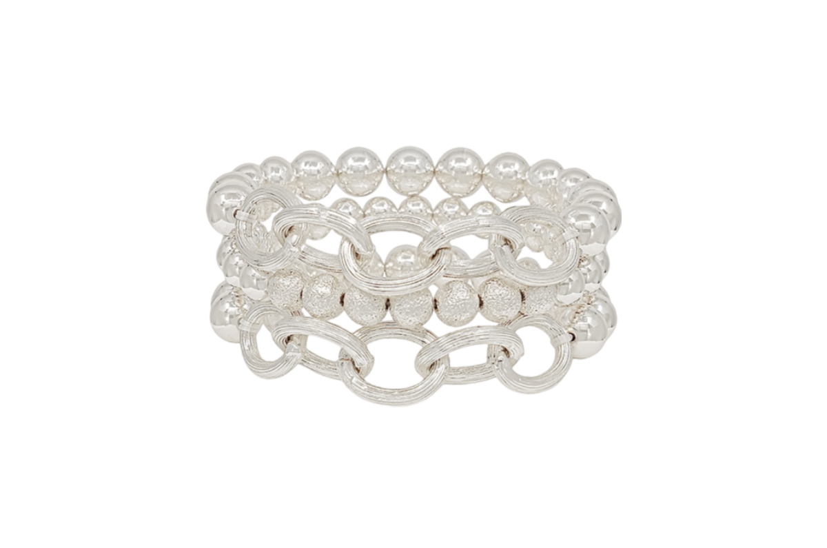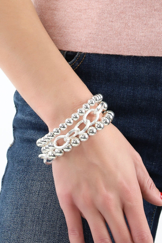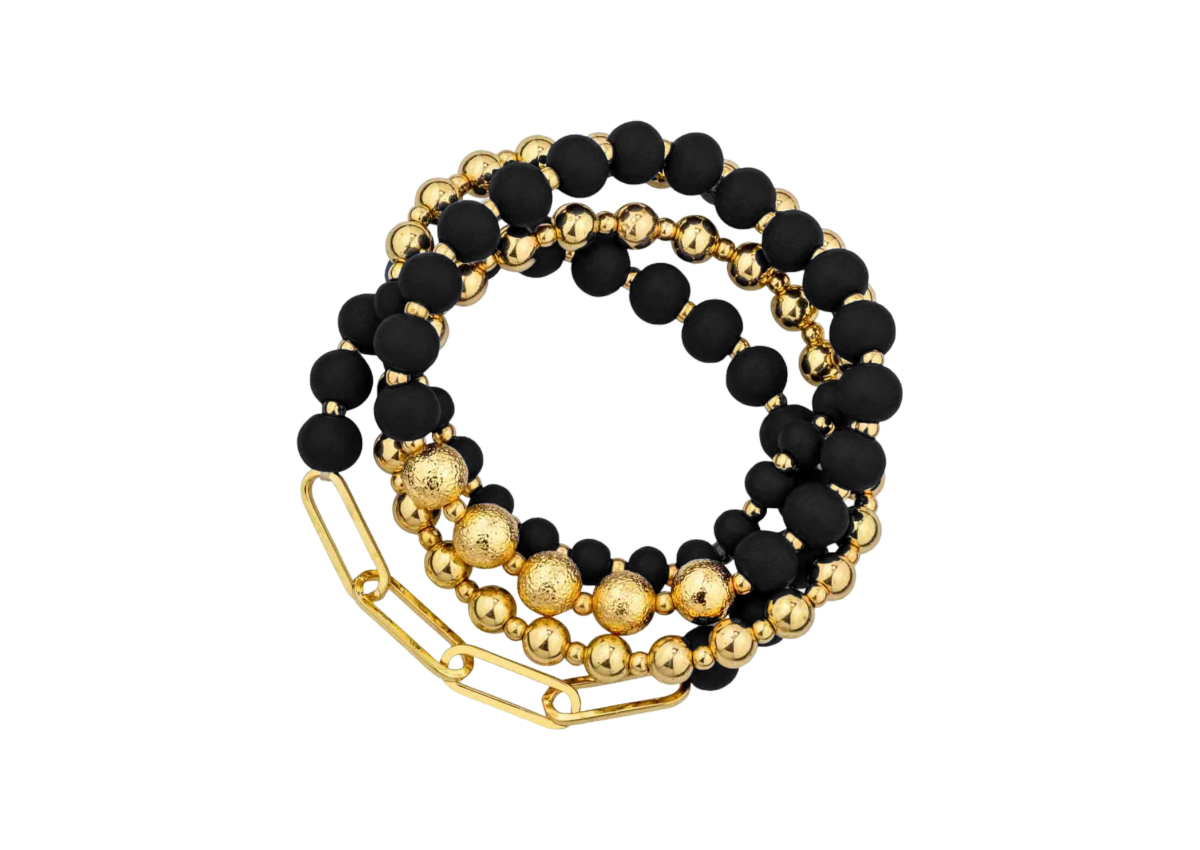 Wood and Gold Chain Set of 4 Stretch Bracelets