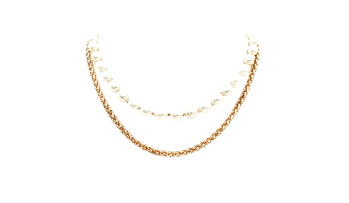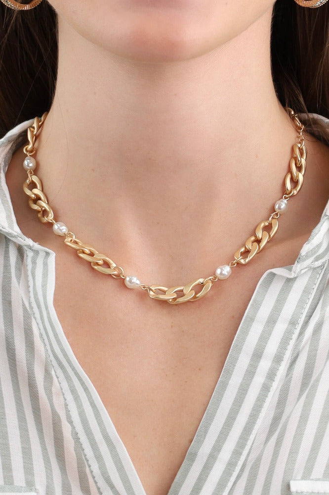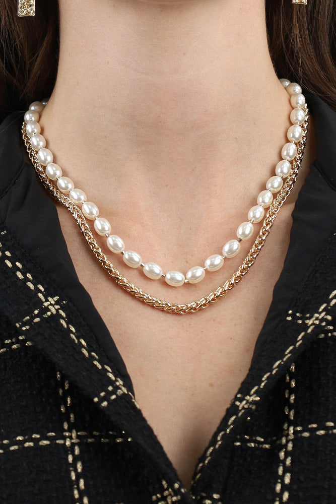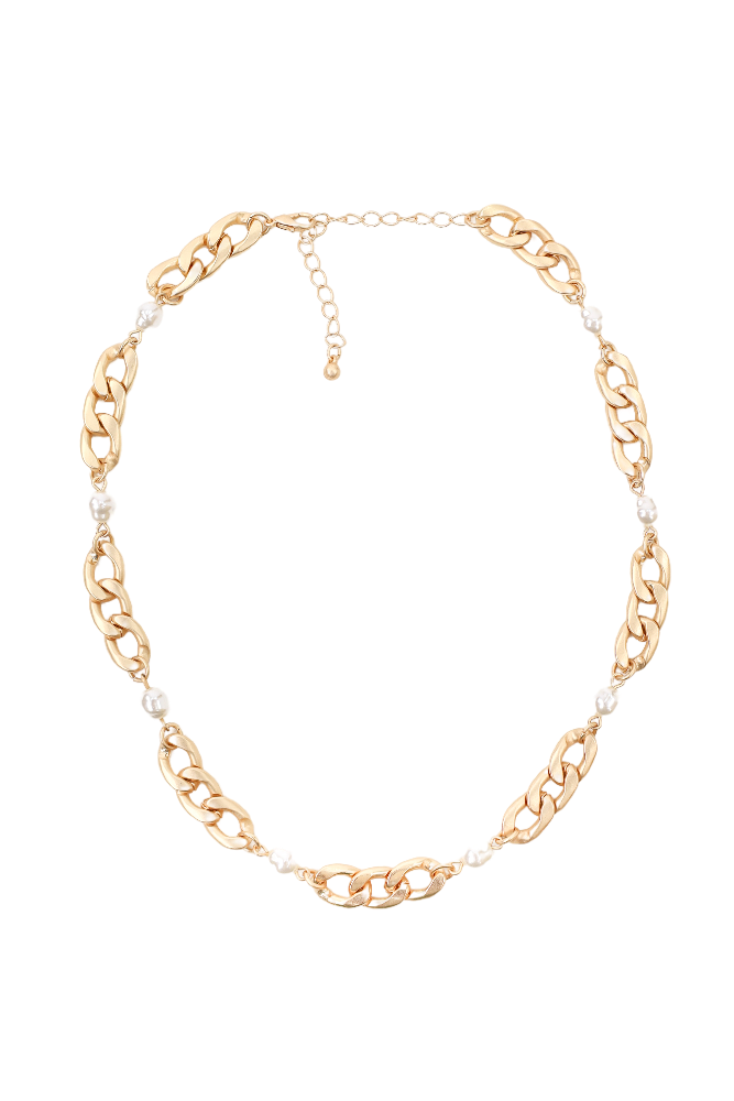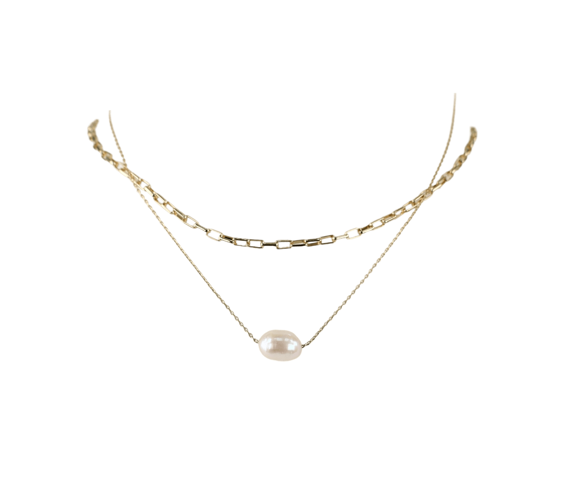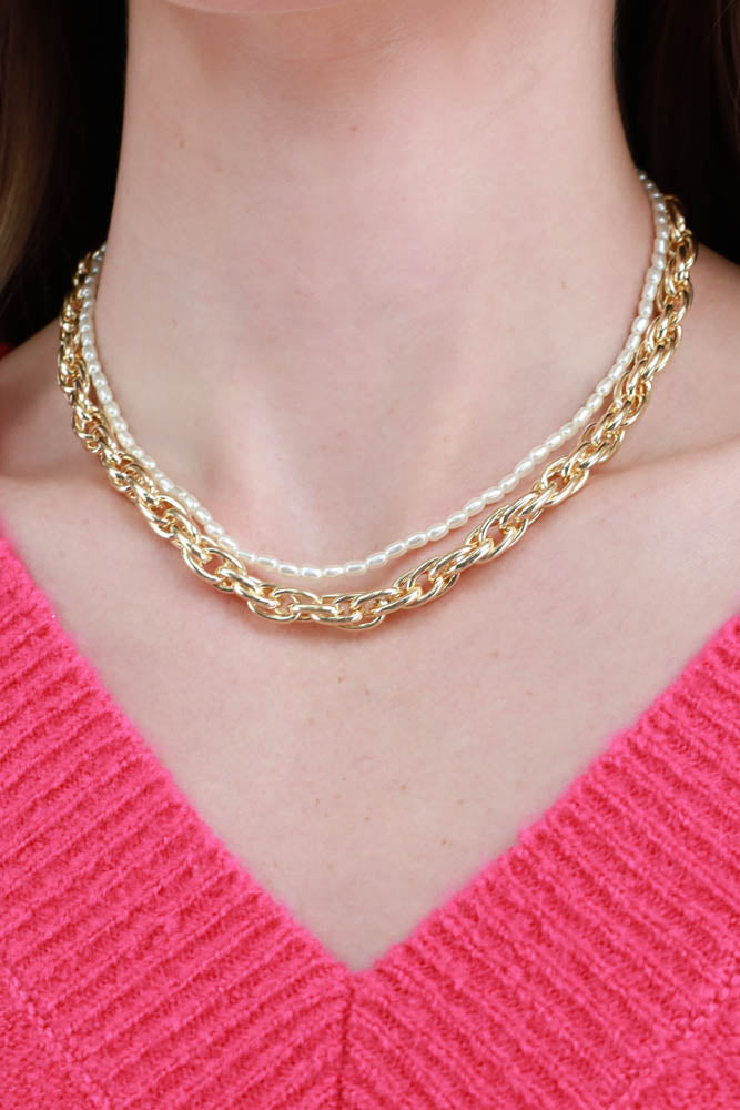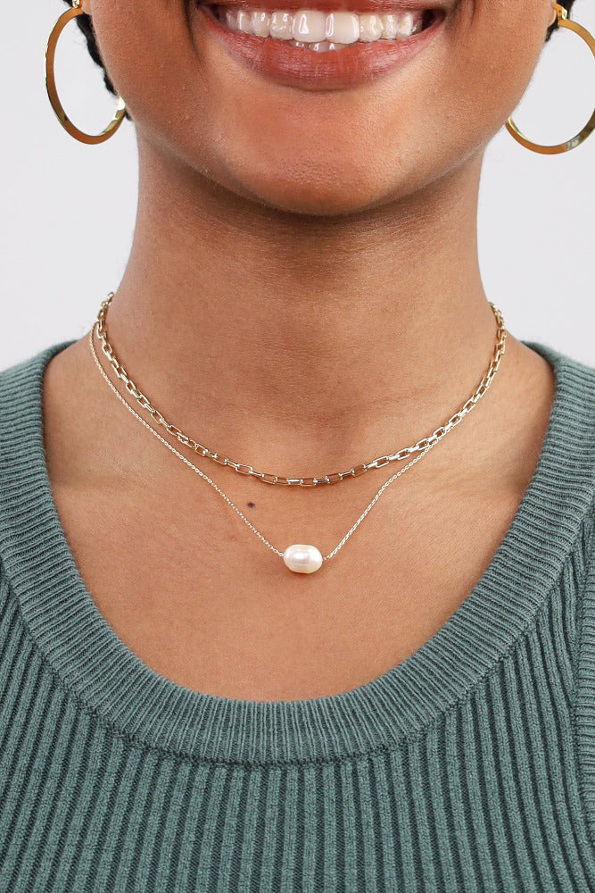 Gold Linked Chain with Freshwater Pearl Layered Necklace - Gold
