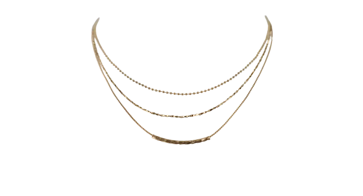 Dainty Three Layered Chain Necklace - Gold