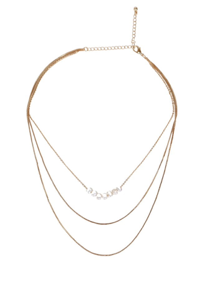 Freshwater Pearl Three Tiered Layered Necklace - Gold