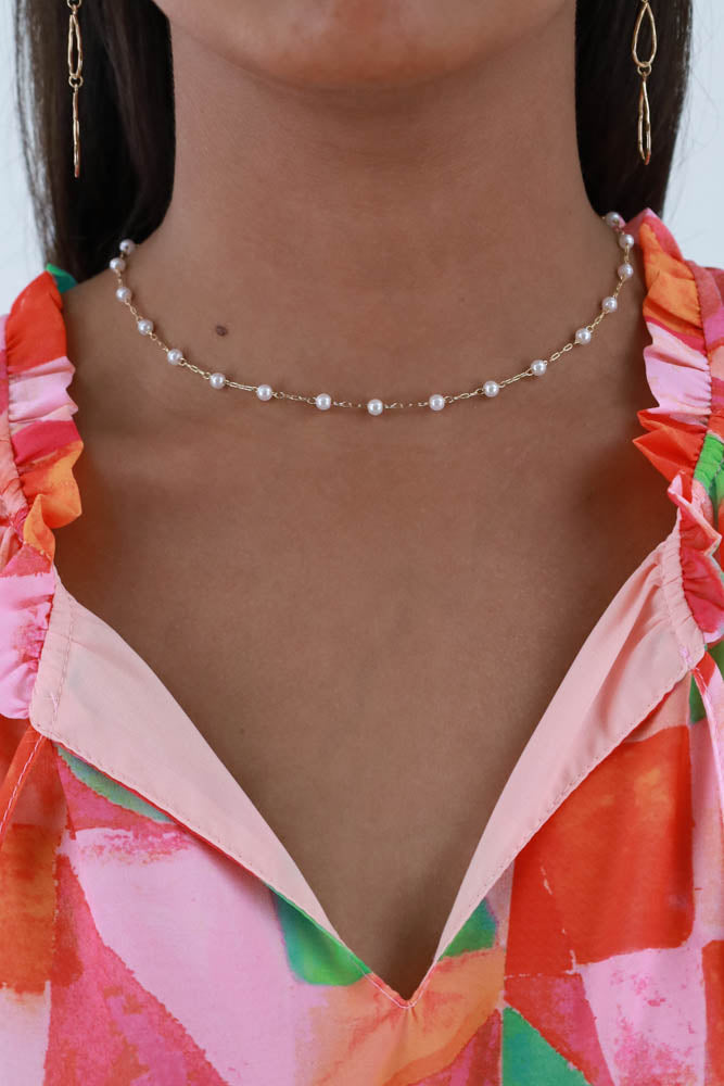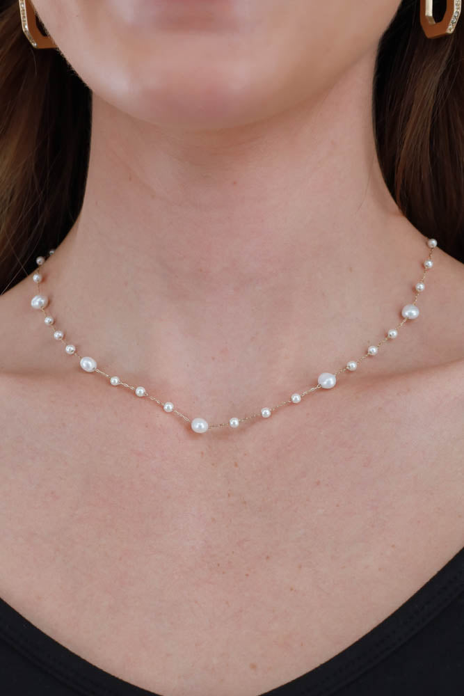 Dainty Pearl Necklace - Gold