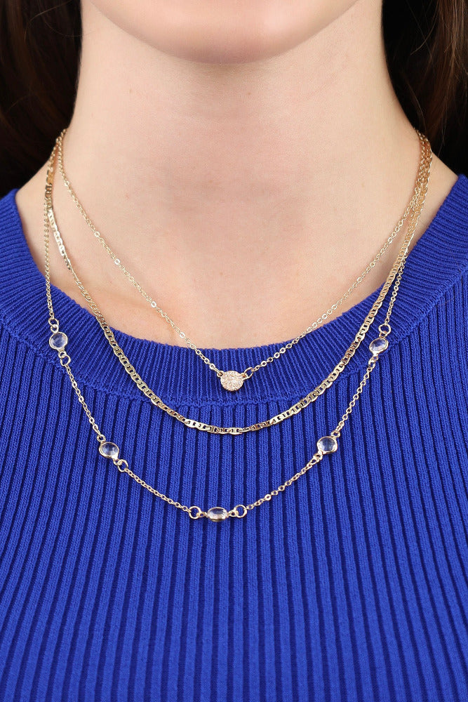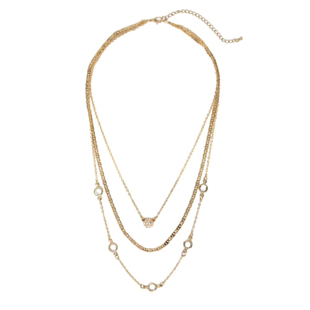 Triple Layered Crystal Necklace - Gold