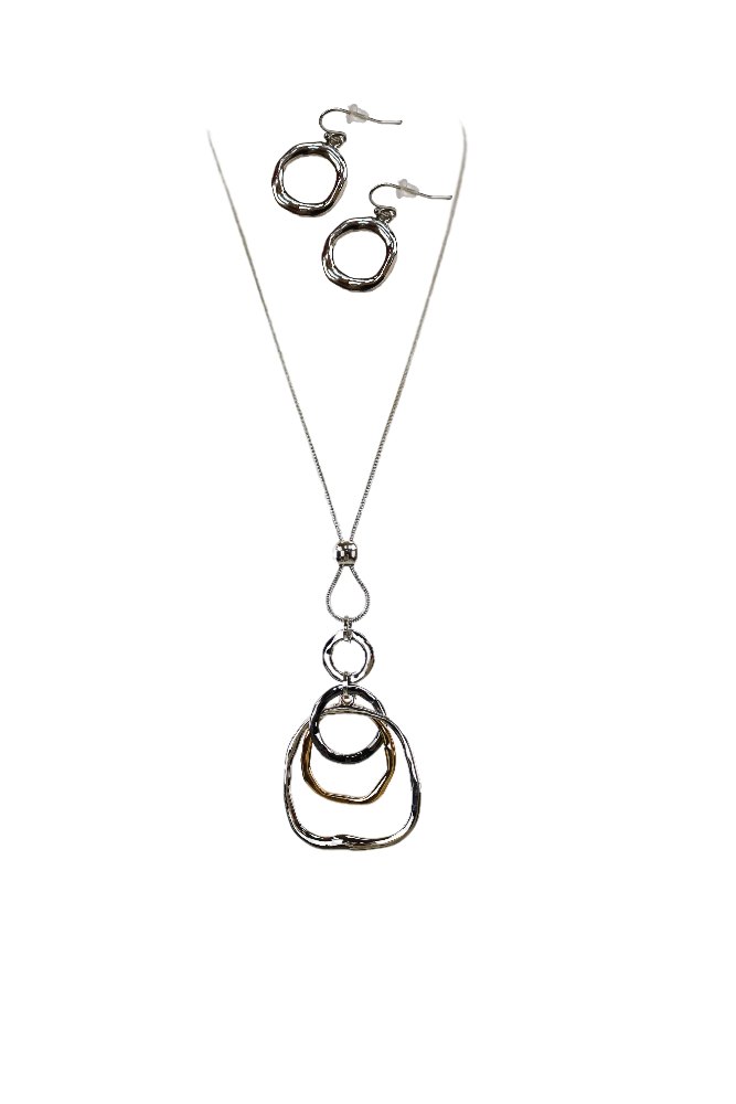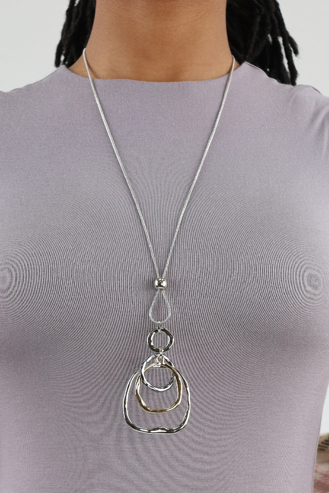 Multi-layer Two Tone Pendant Necklace - Silver