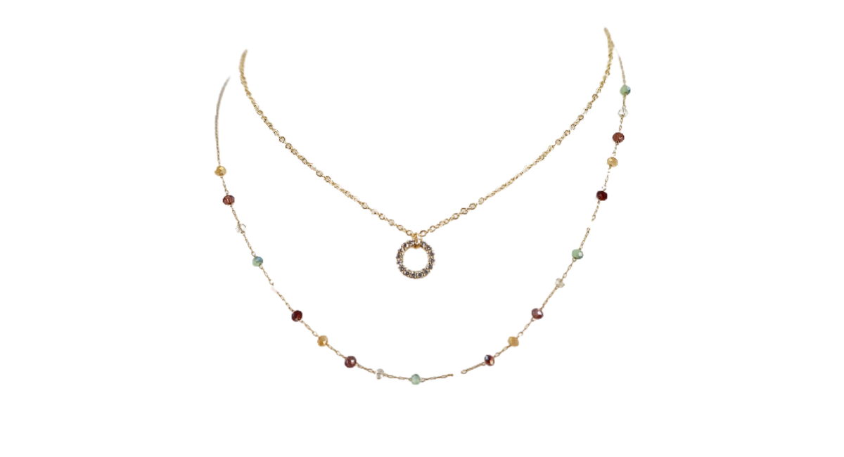 Crystal and Gold Rhinestone Circle Layered Necklace - Multi