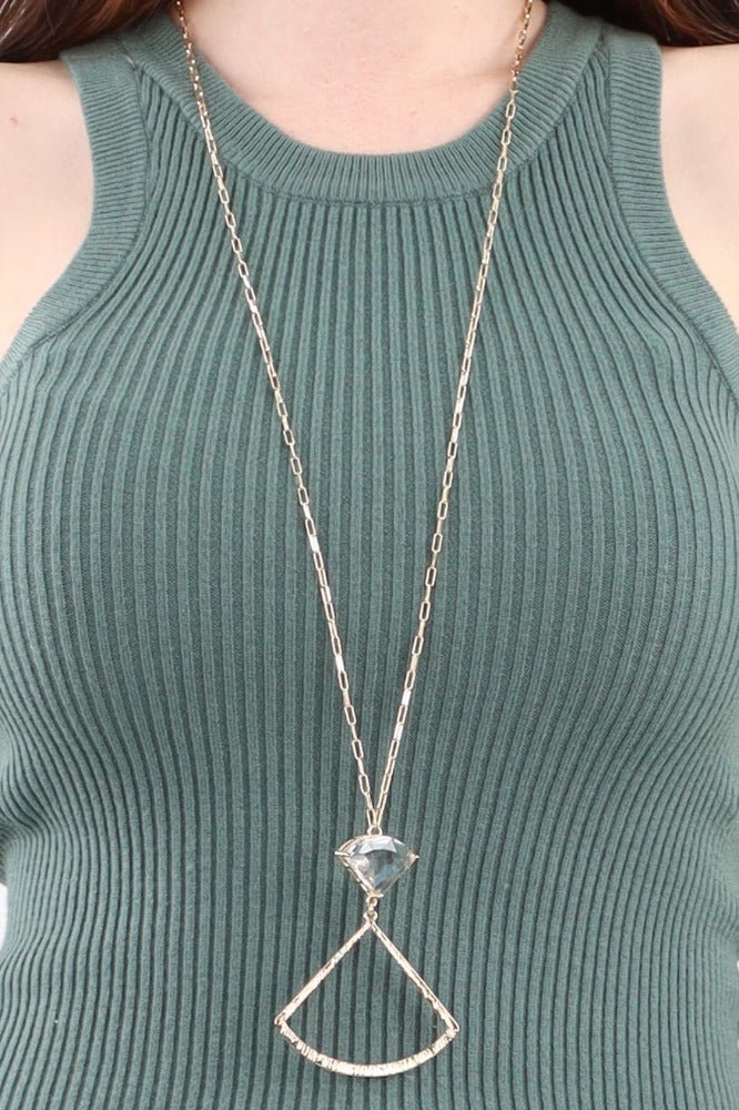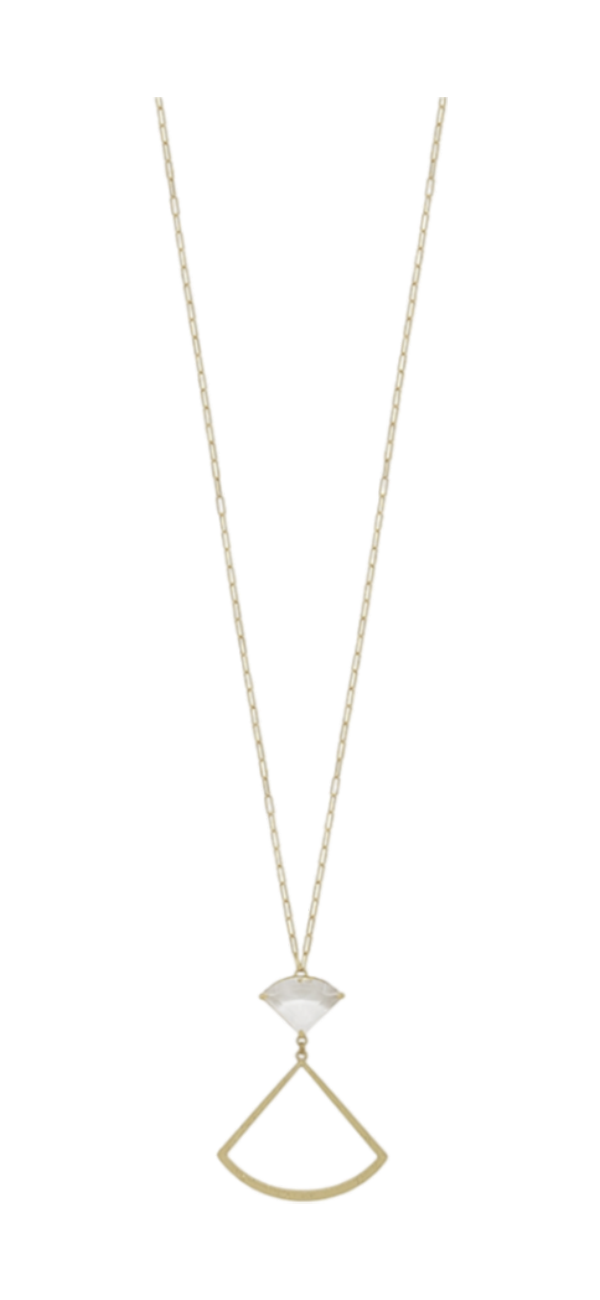 Crystal Fan Shaped Pendant Necklace - Clear
