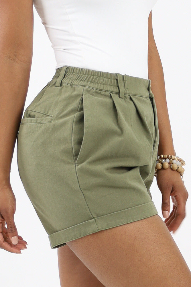 Classic Pleated Shorts -Olive