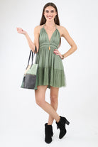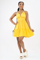 Step into summer vibes with our sassy Mini Dress! The Waist Tunnel Detail adds a flirty twist, the Ruffled Hem brings the fun, and the Halter Neck keeps it cool. Shine bright, stay breezy, and dance the night away in this must-have summer stunner!