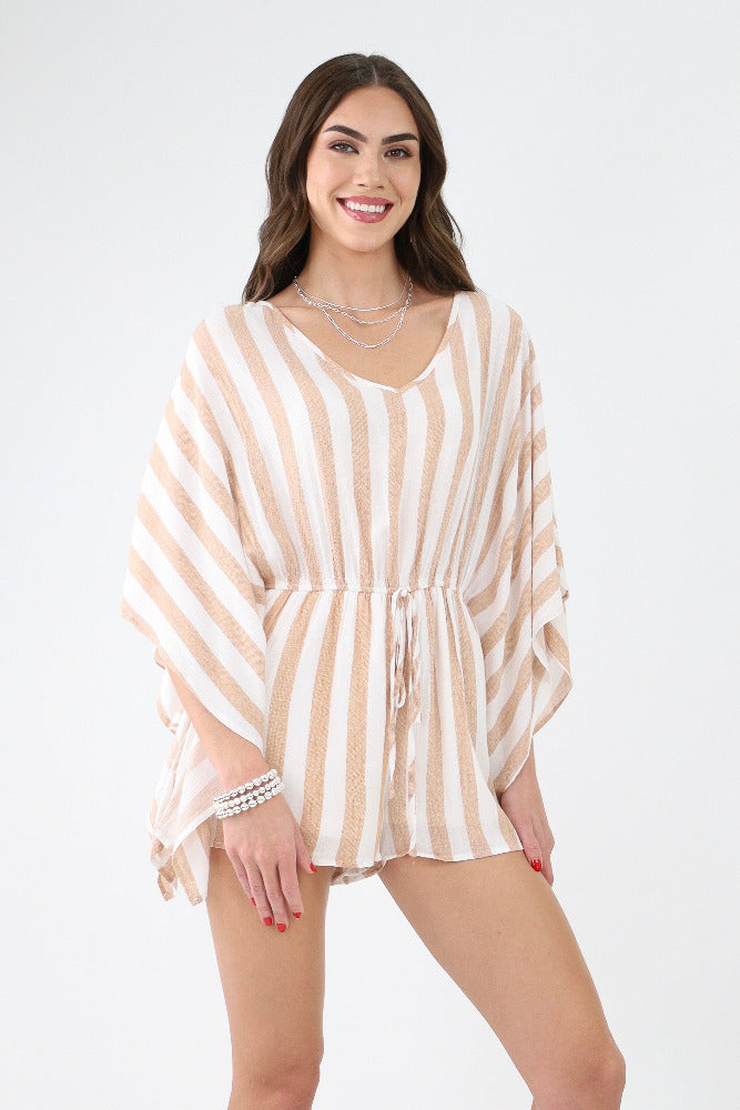 Step into summer vibes with our Striped Woven V Neck Romper! This playful one-piece features a trendy V-neck design and chic stripes, making it the perfect blend of comfort and style.