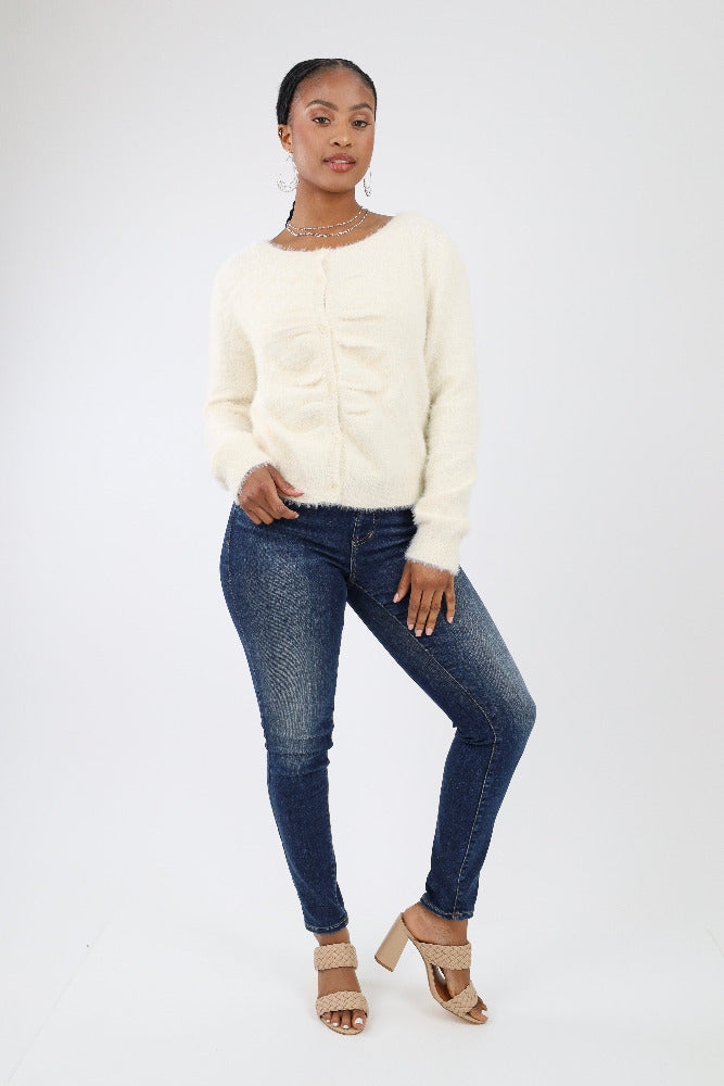 Fuzzy Sweater Cardigan - Ivory