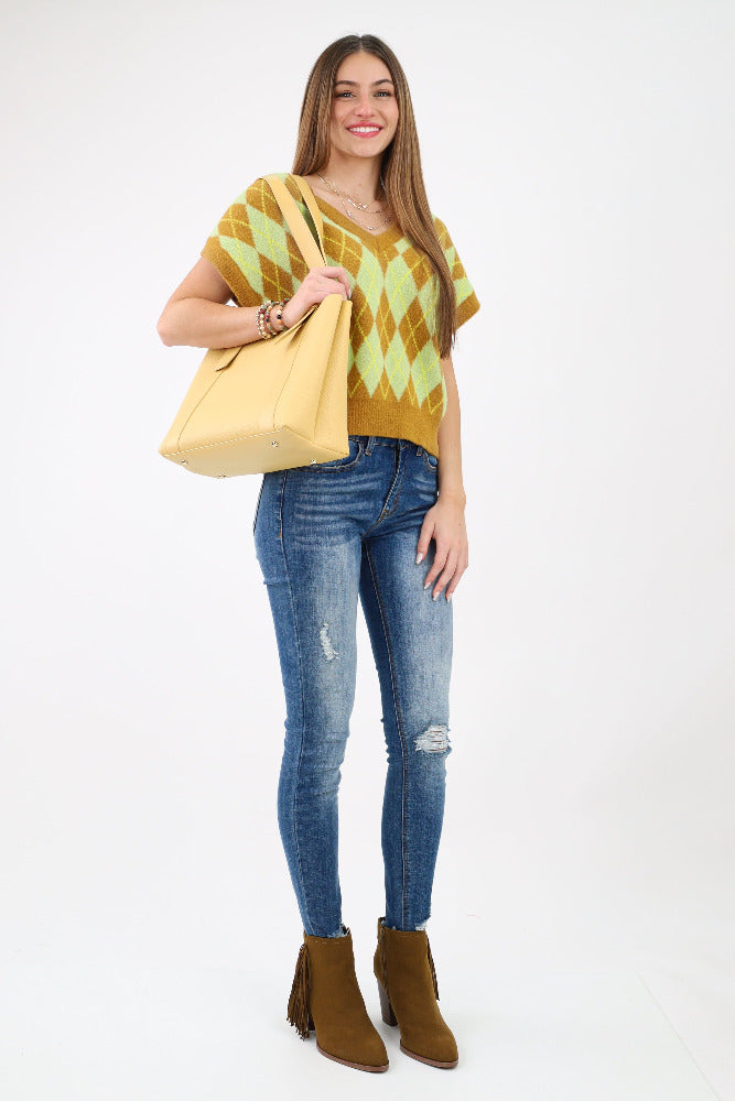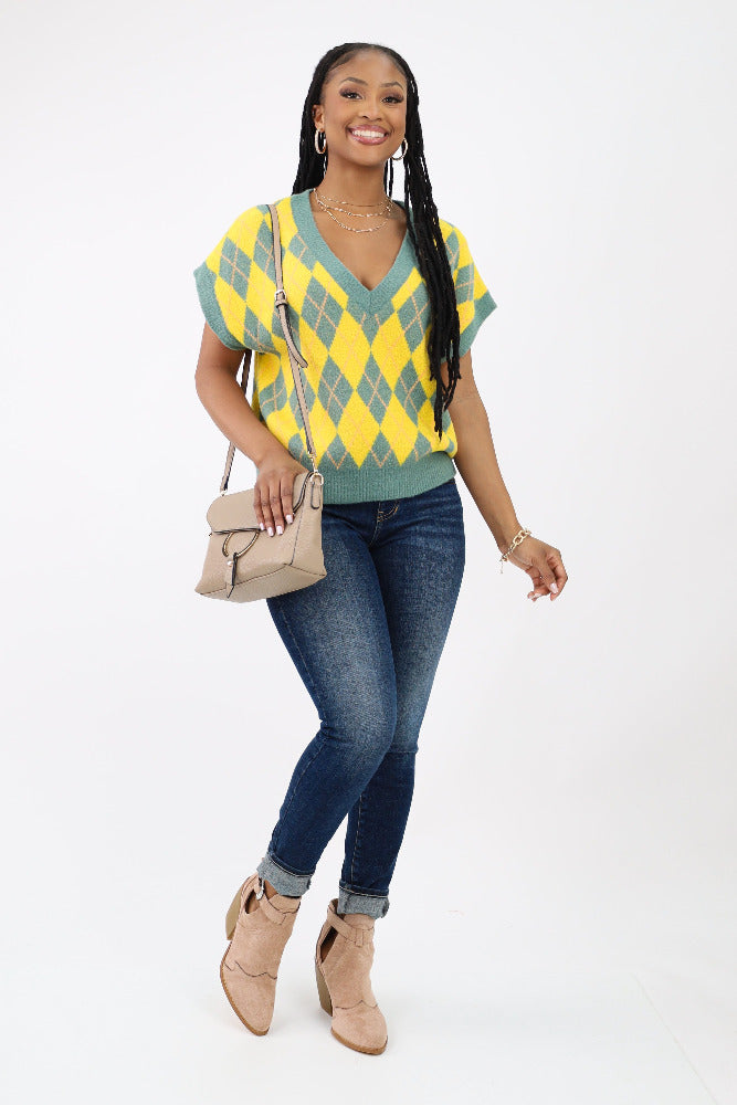 Fall Mood Argyle Sweater Vest - Yellow