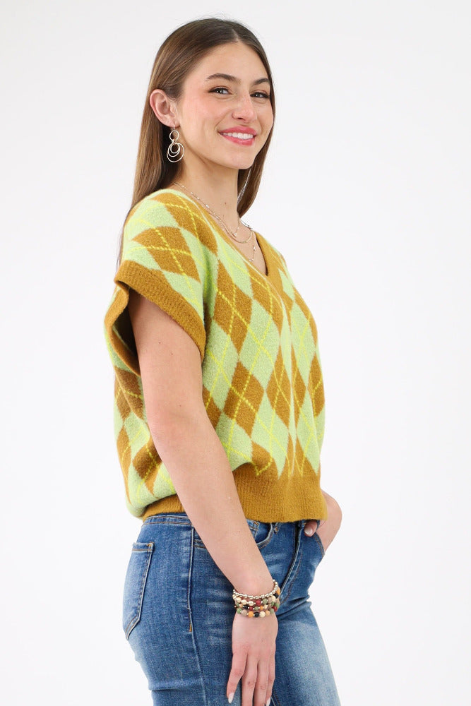 Fall Mood Argyle Sweater Vest - Olive