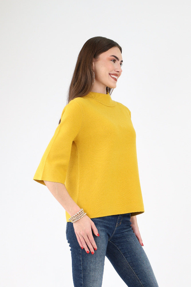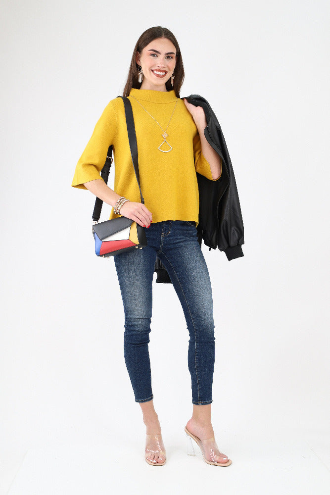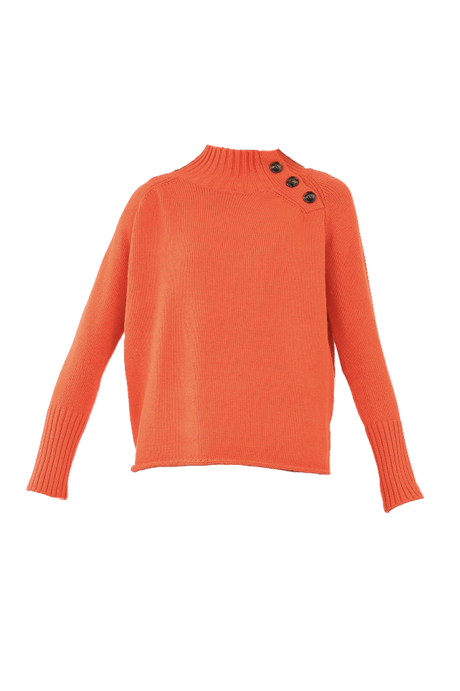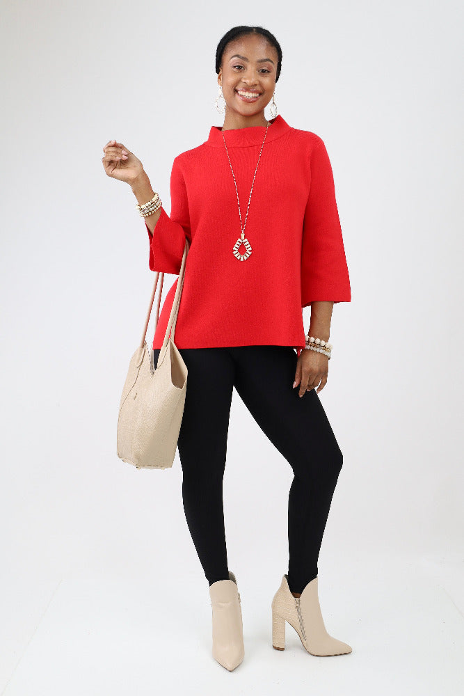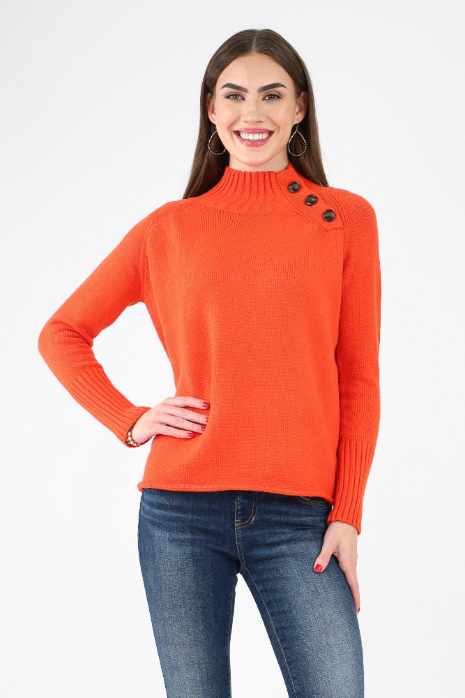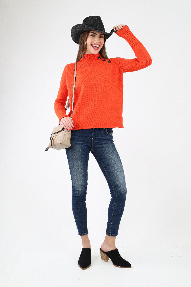 Mock Neck Button Detail Sweater - Red