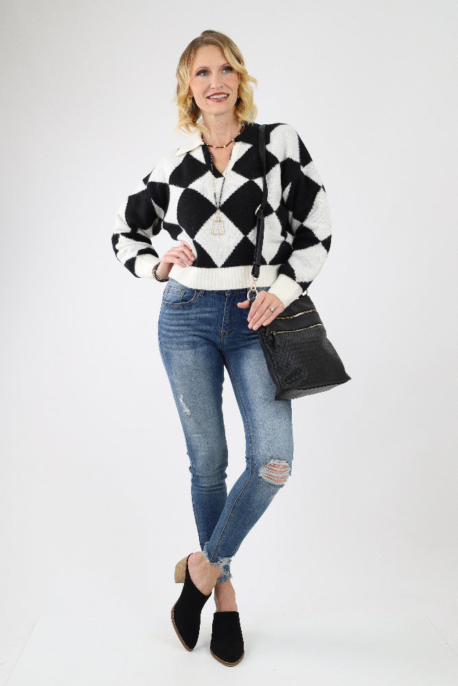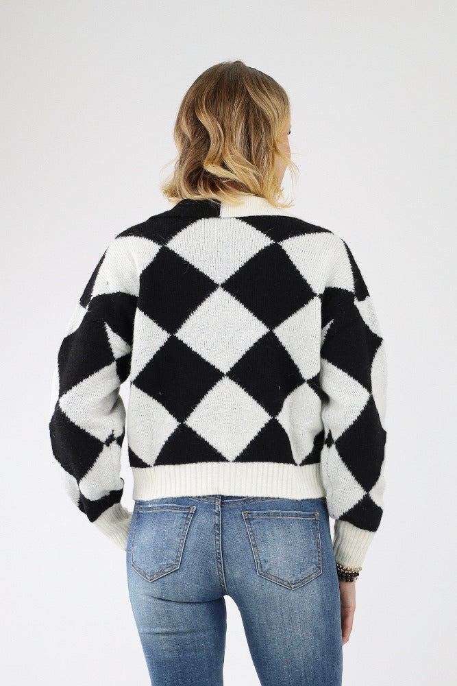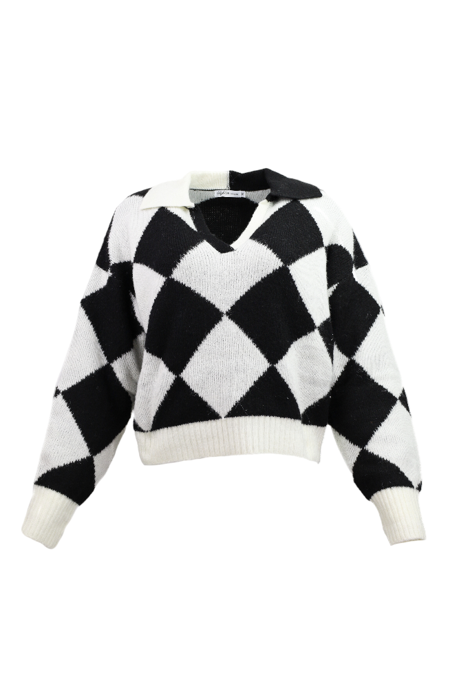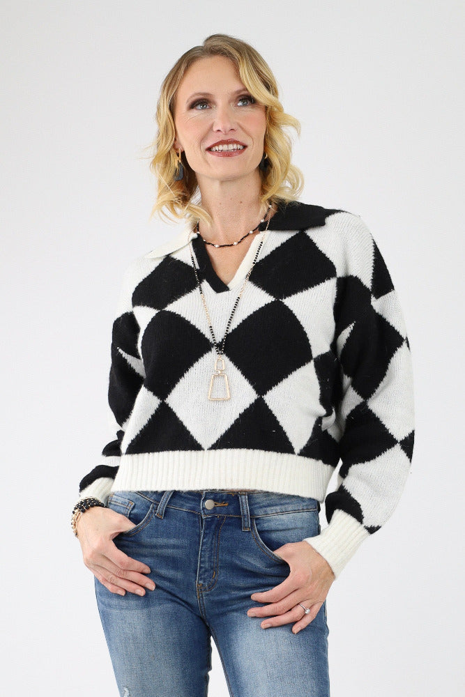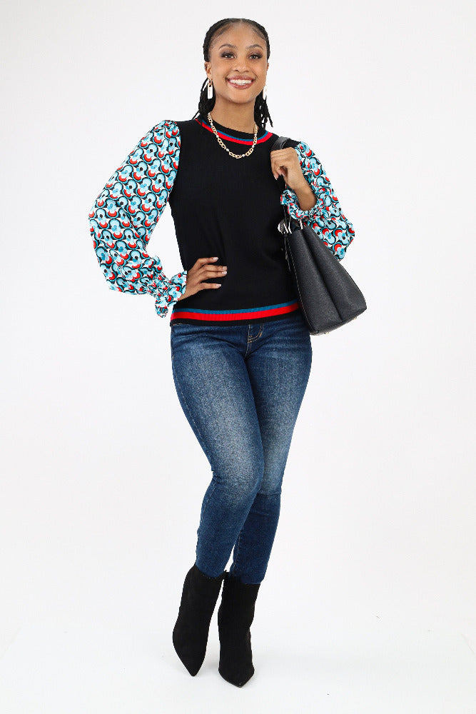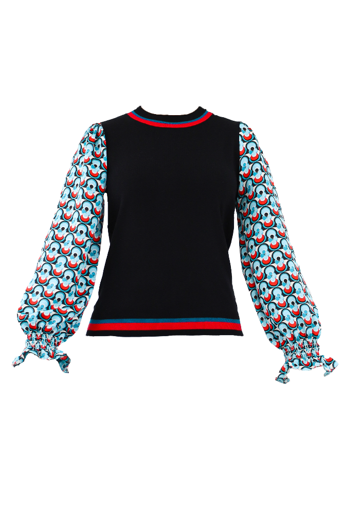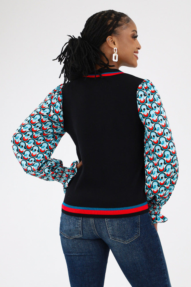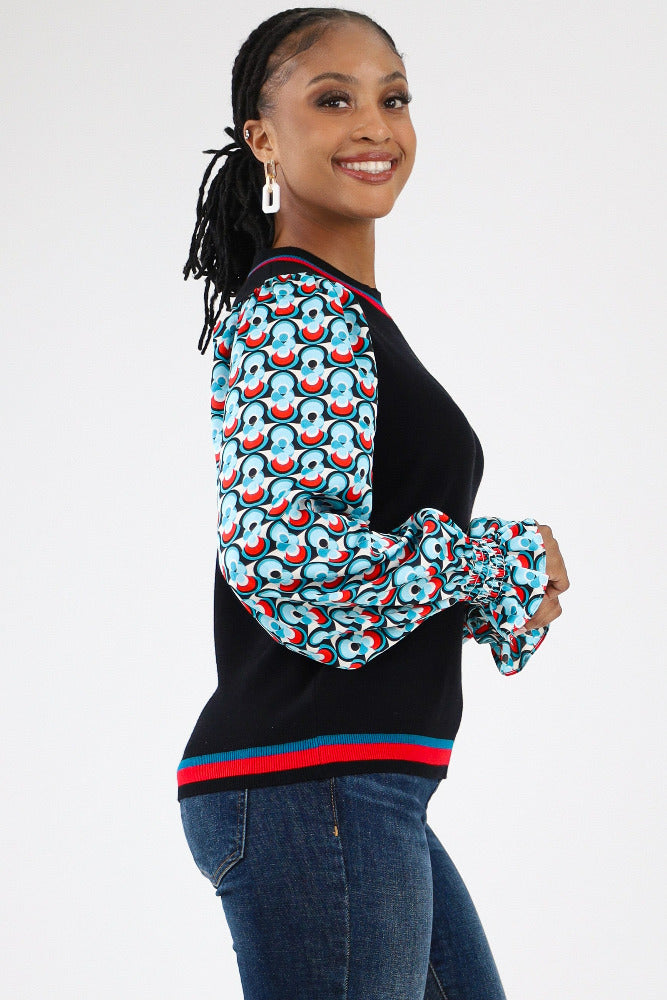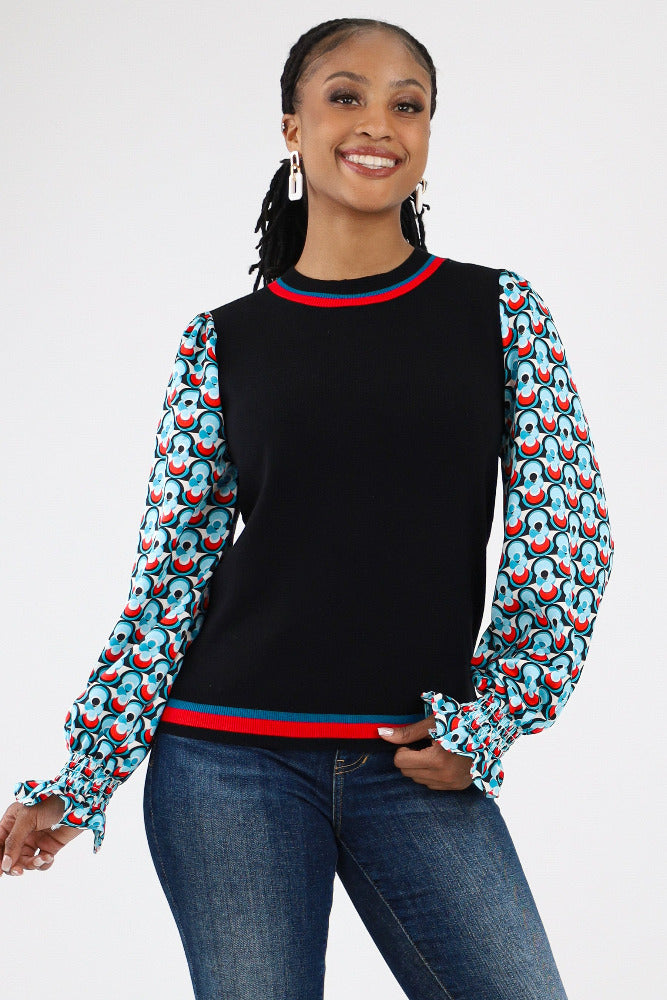 Contrast Geo Print Sweater - Black
