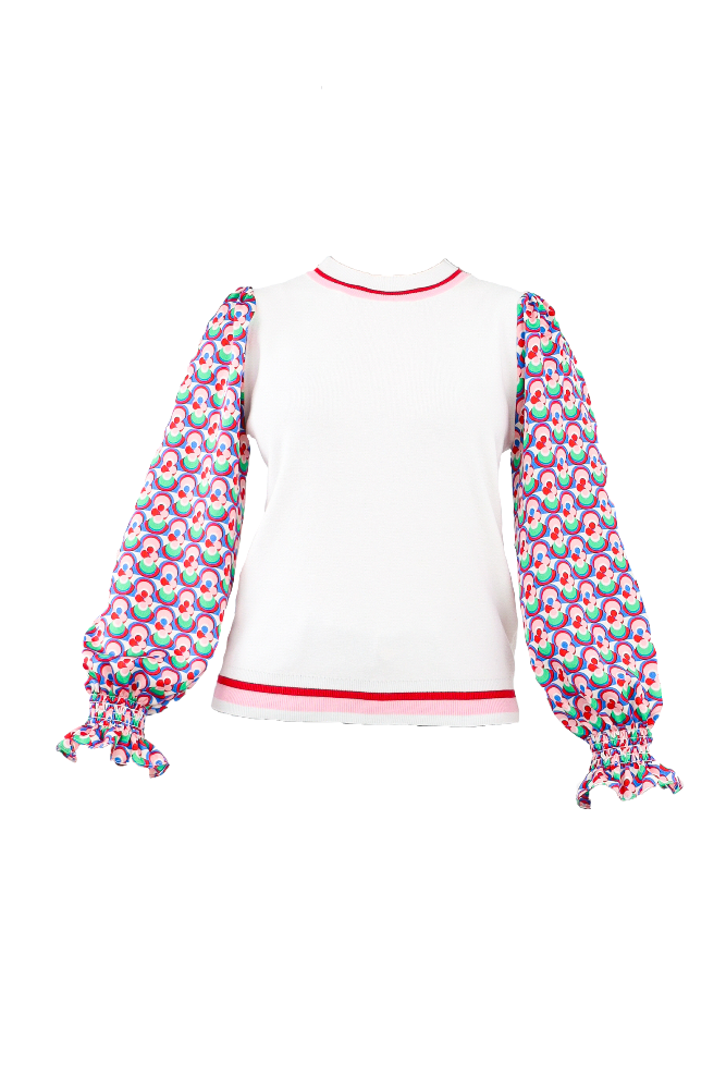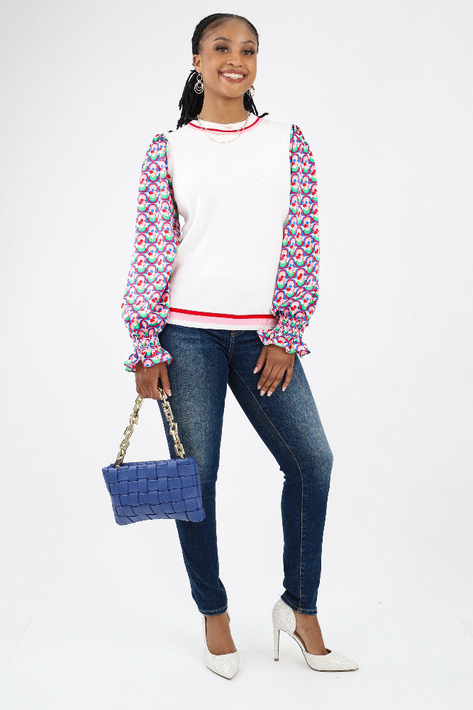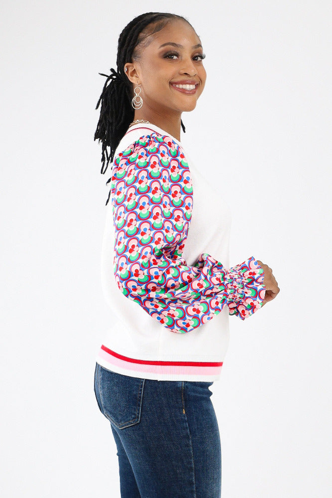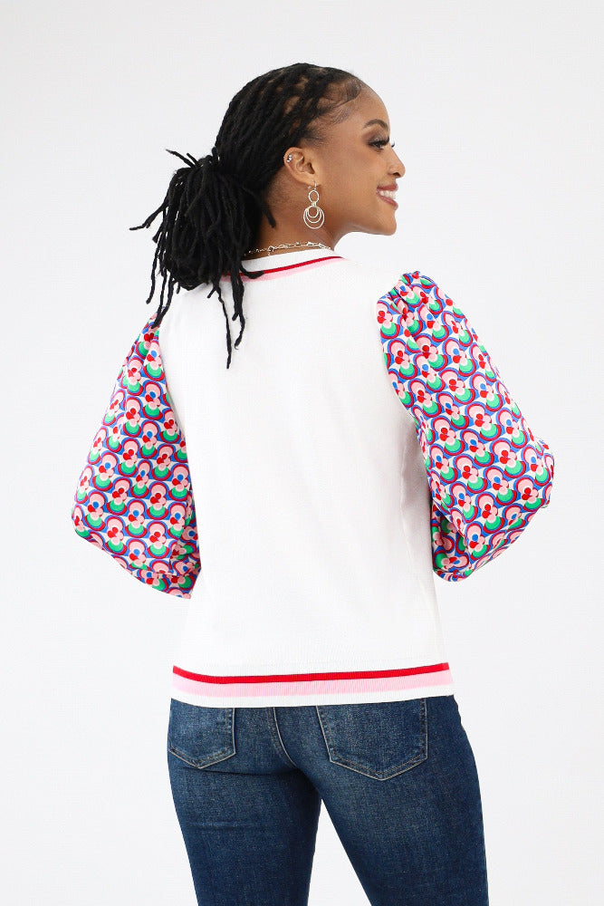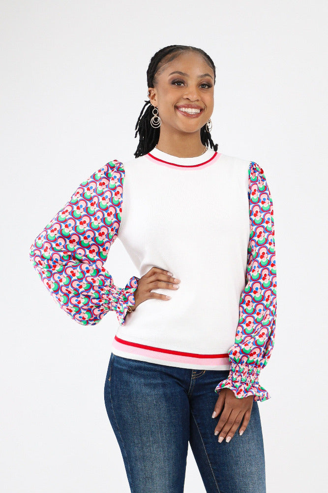 Contrast Geo Print Sweater - Cream