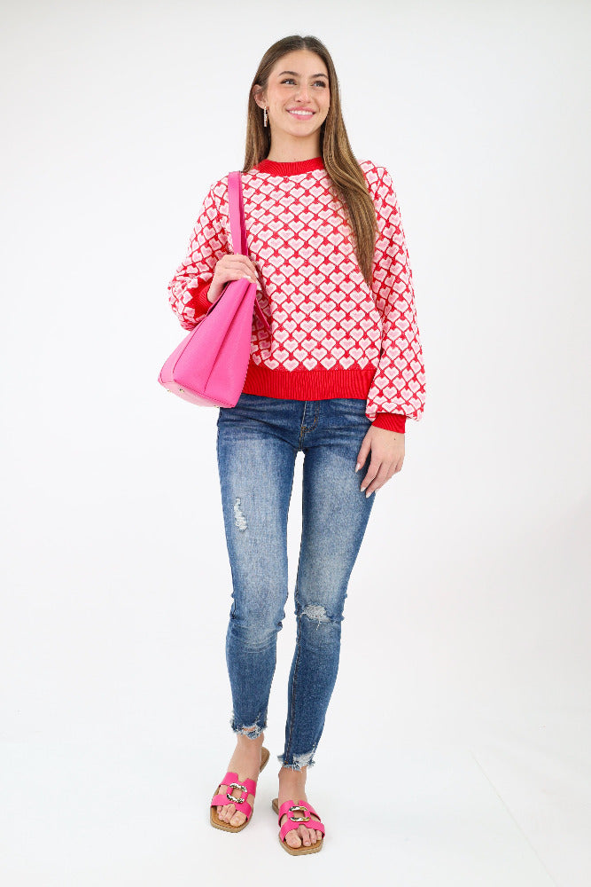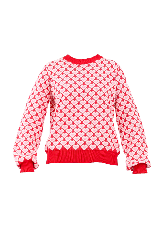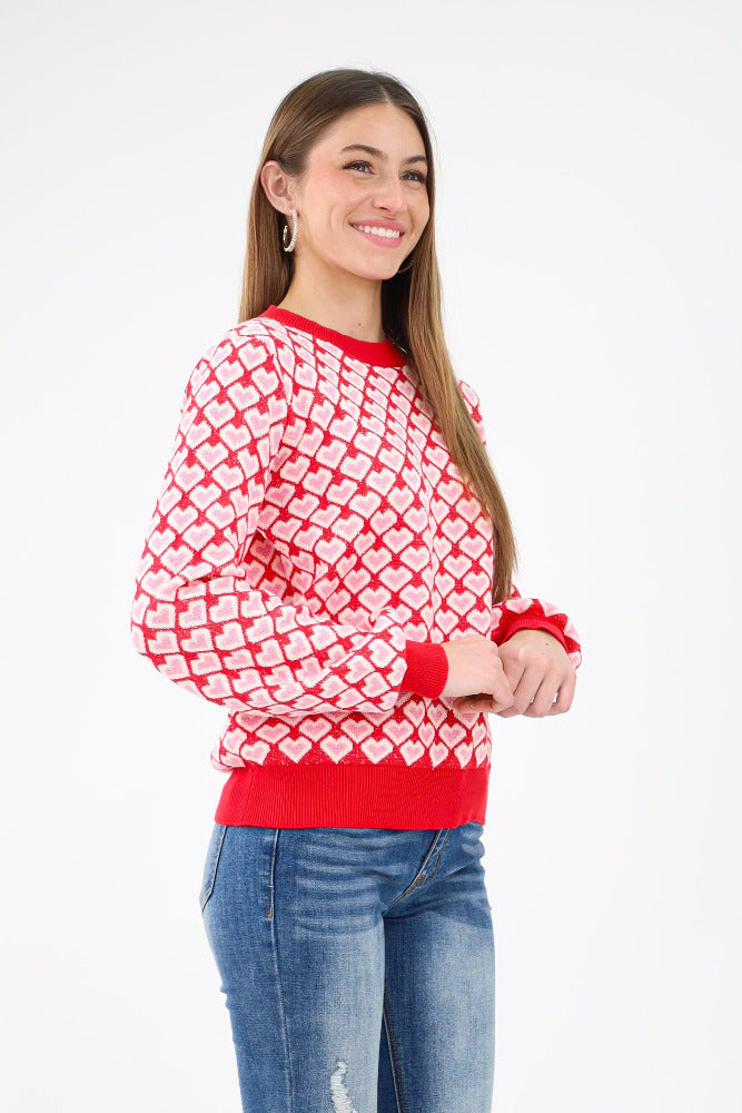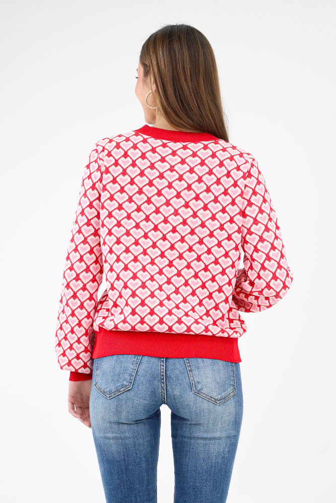 Heart Pattern Knit Sweater - Red