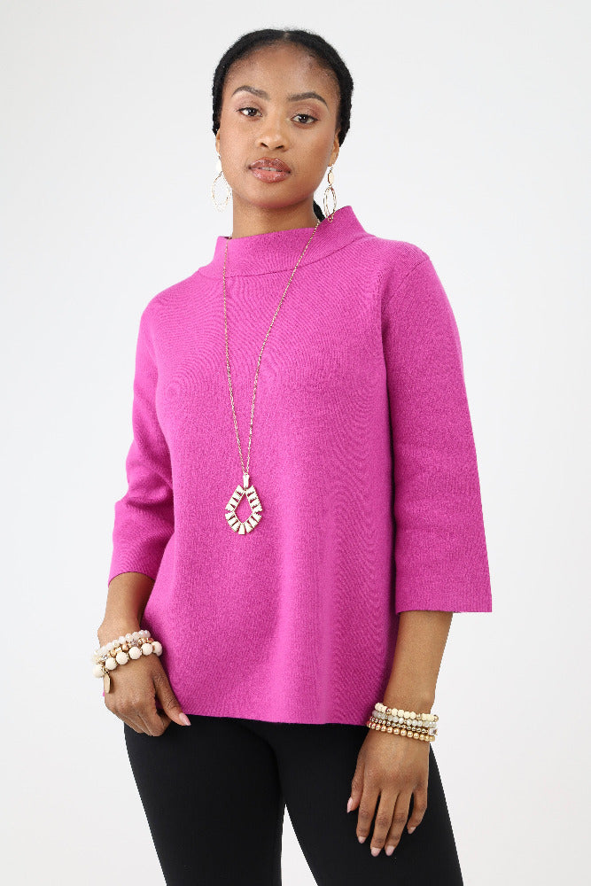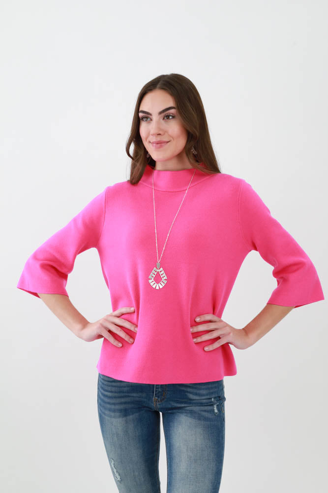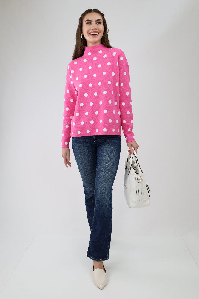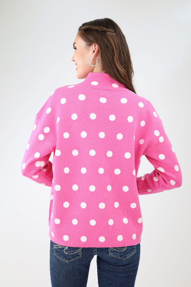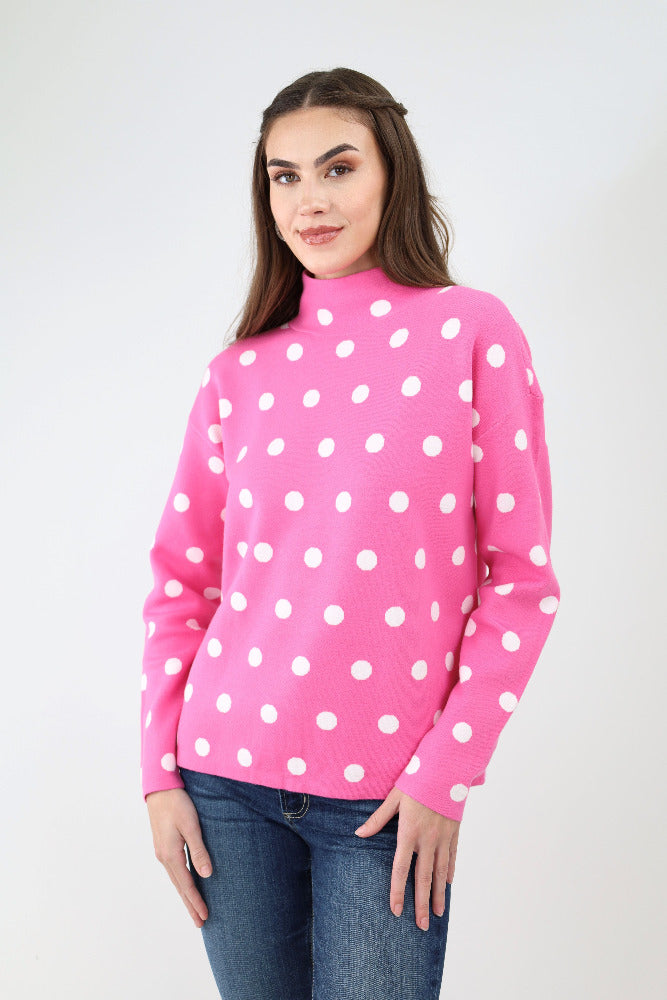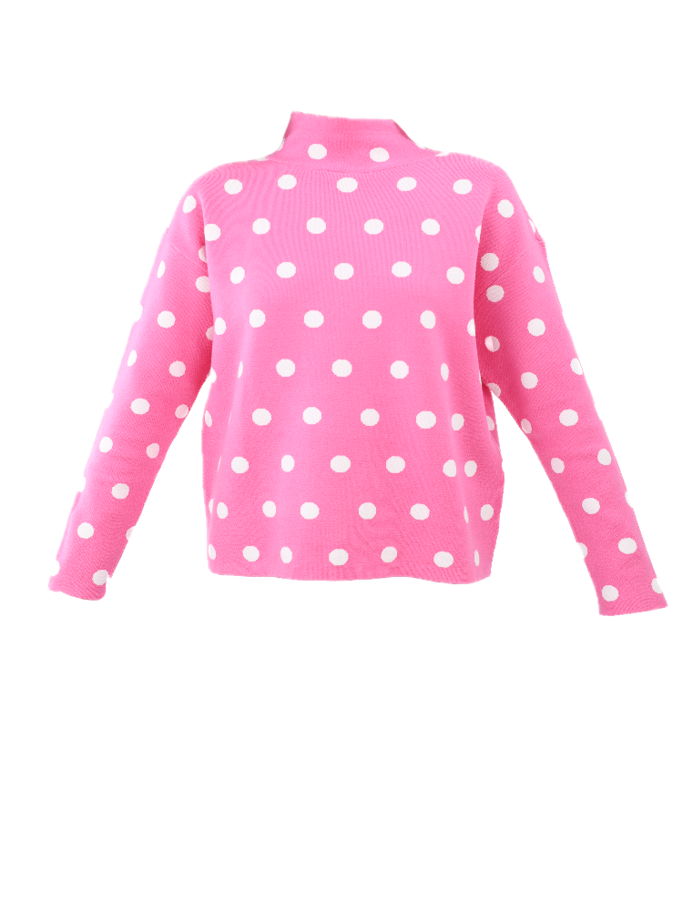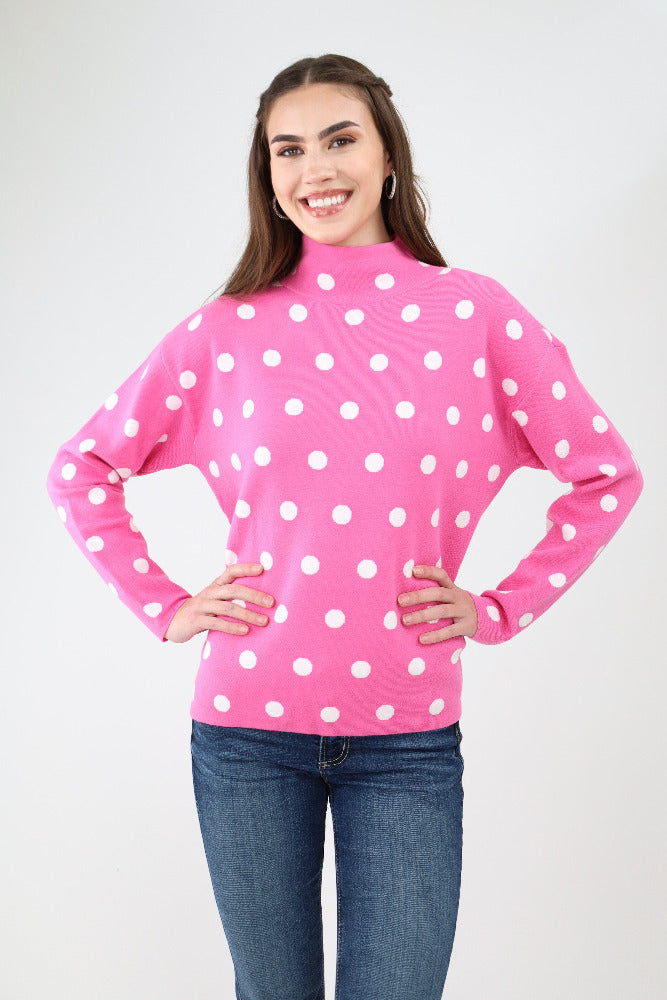 Polka Dot Mock Neck Sweater - Pink