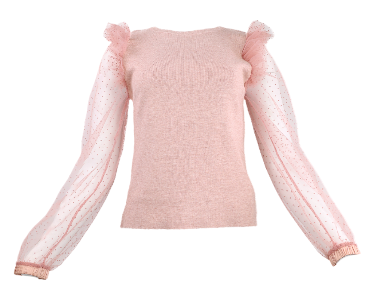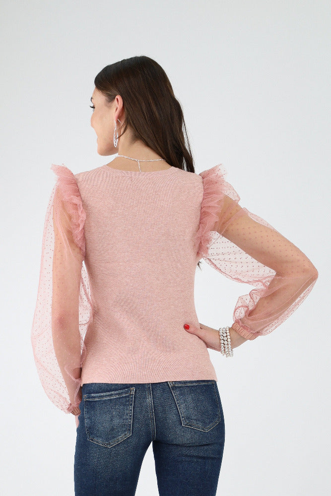 Tulle Sheer Sleeve Sweater - Mauve