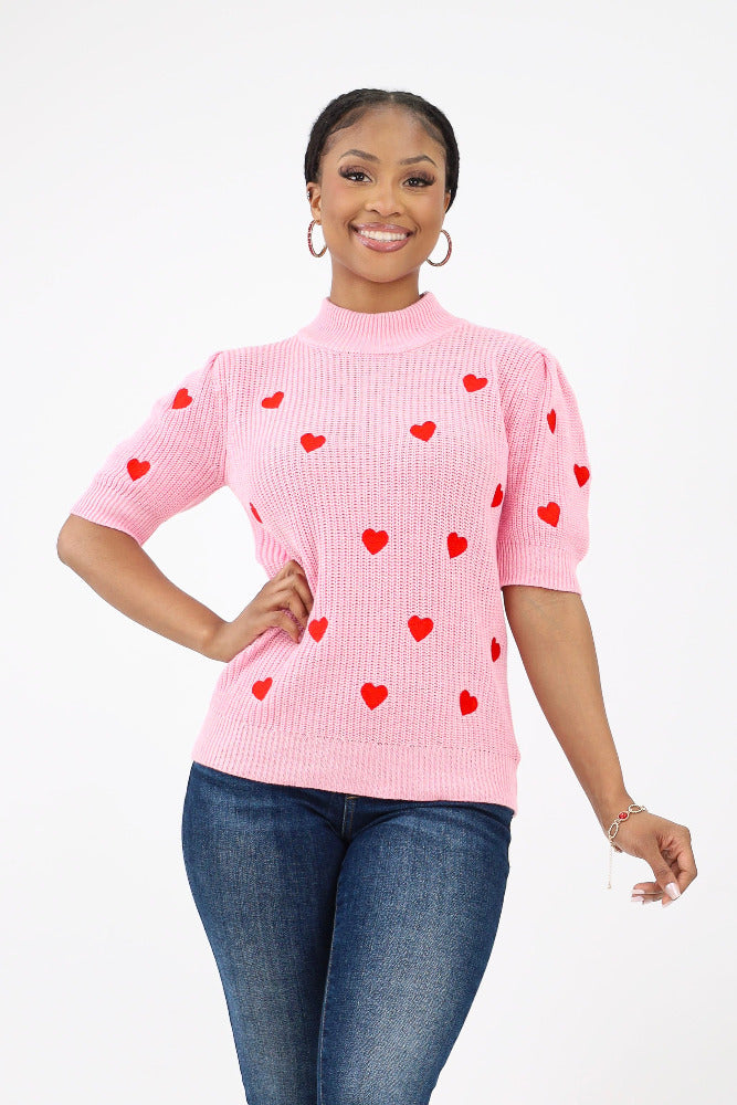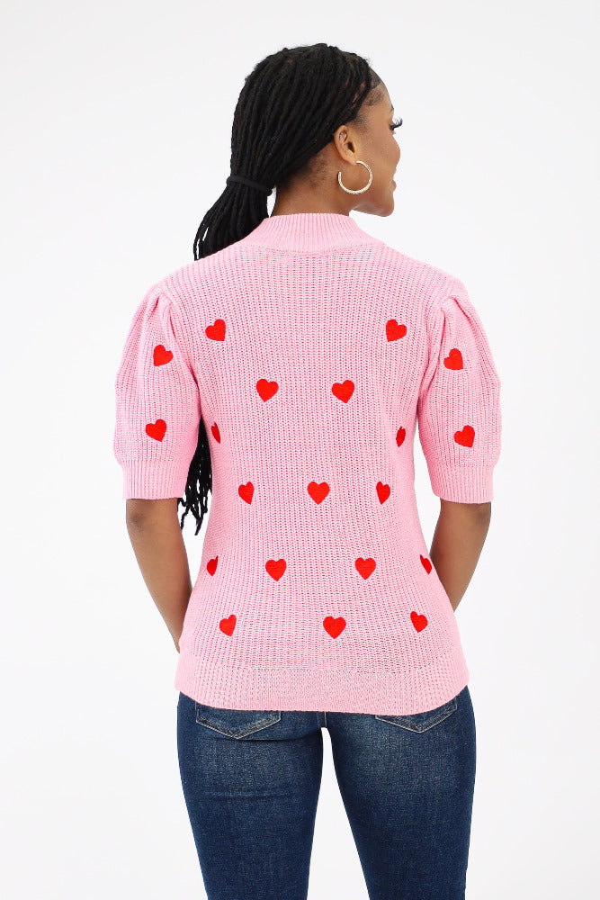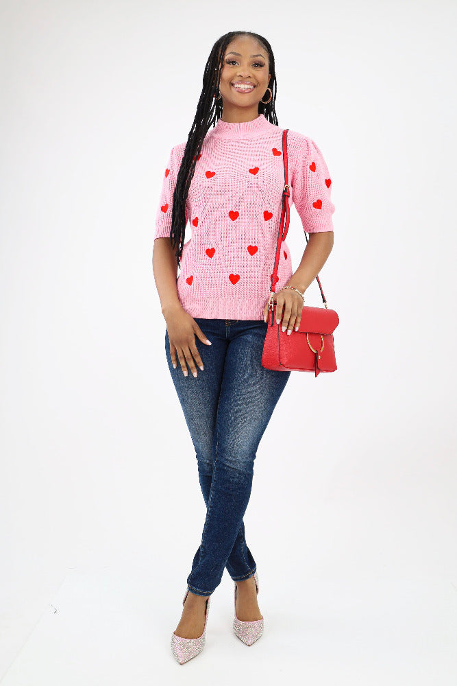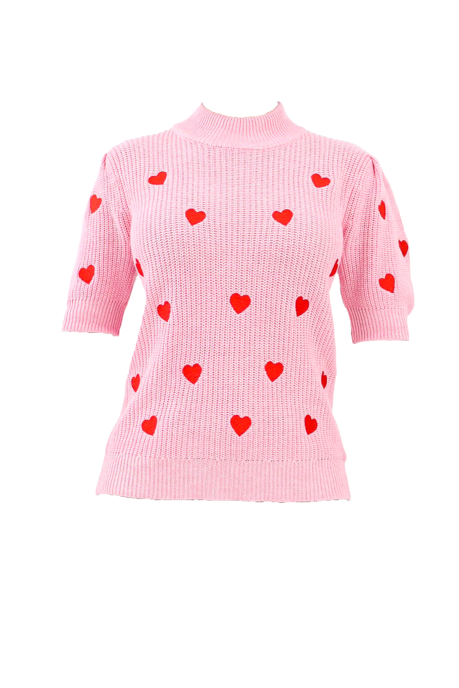 Heart Embellished Sweater - Pink