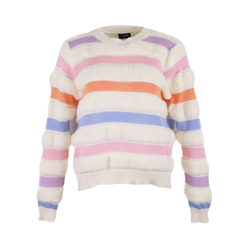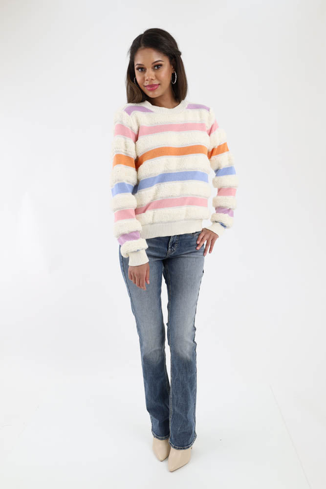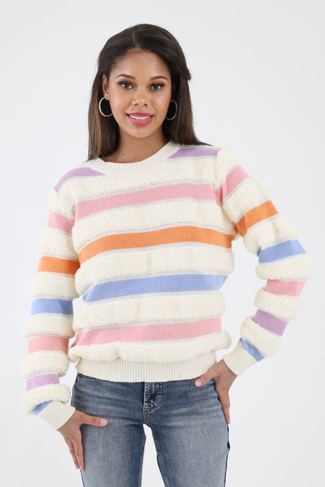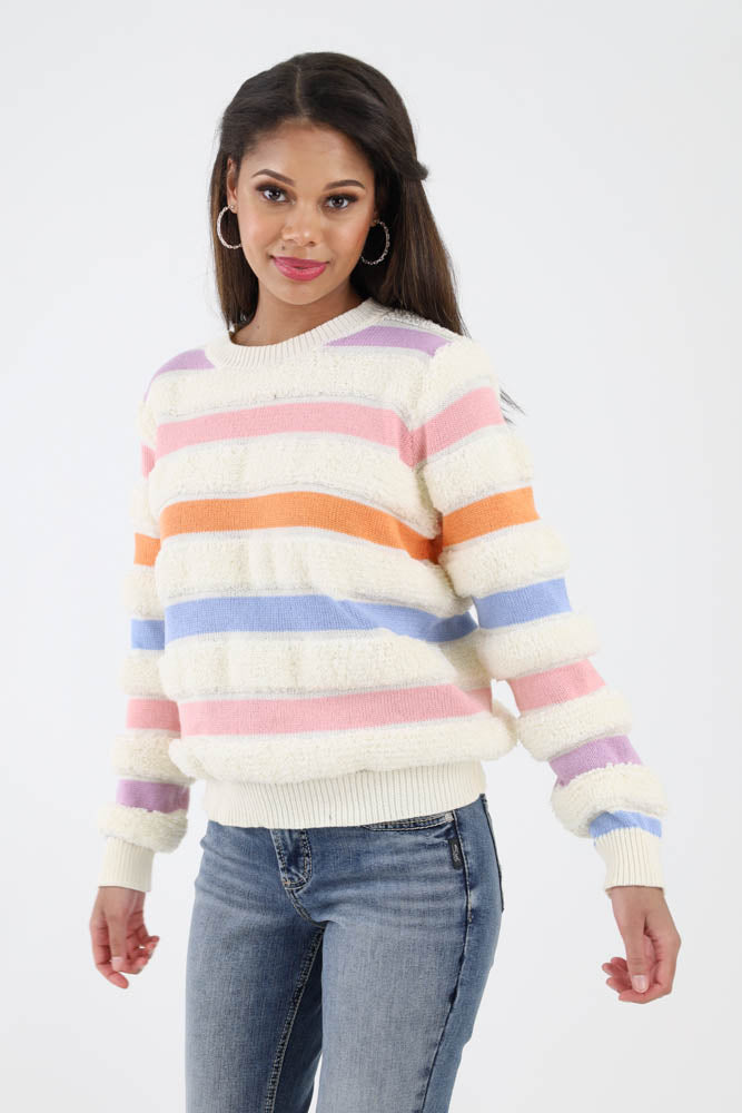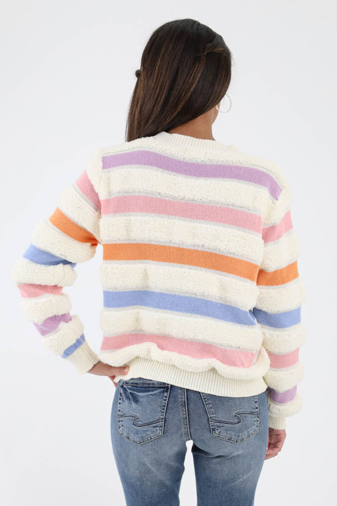 Stripe Looped Knit Sweater - Cream
