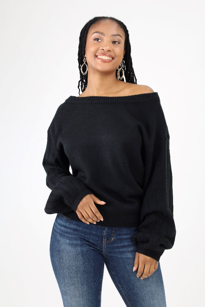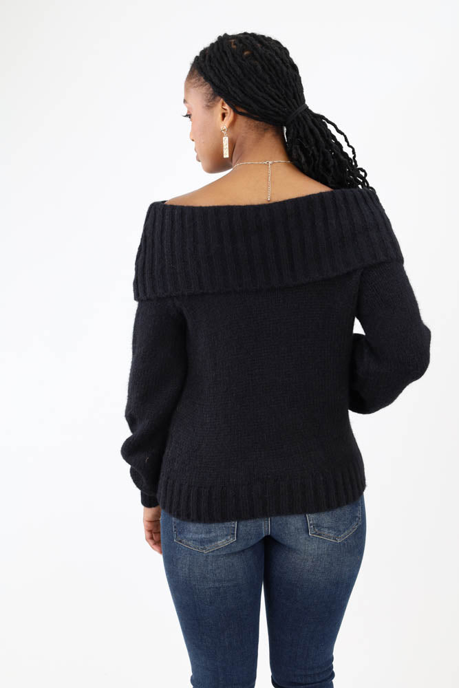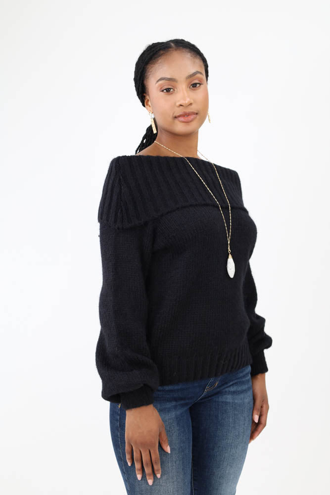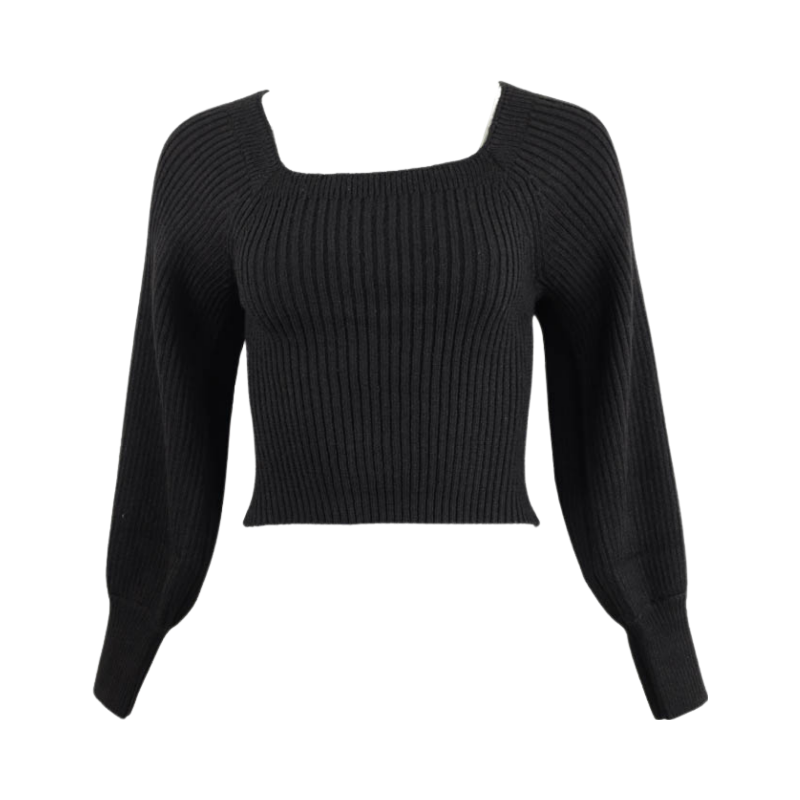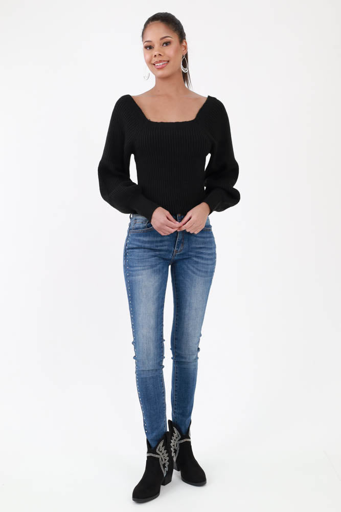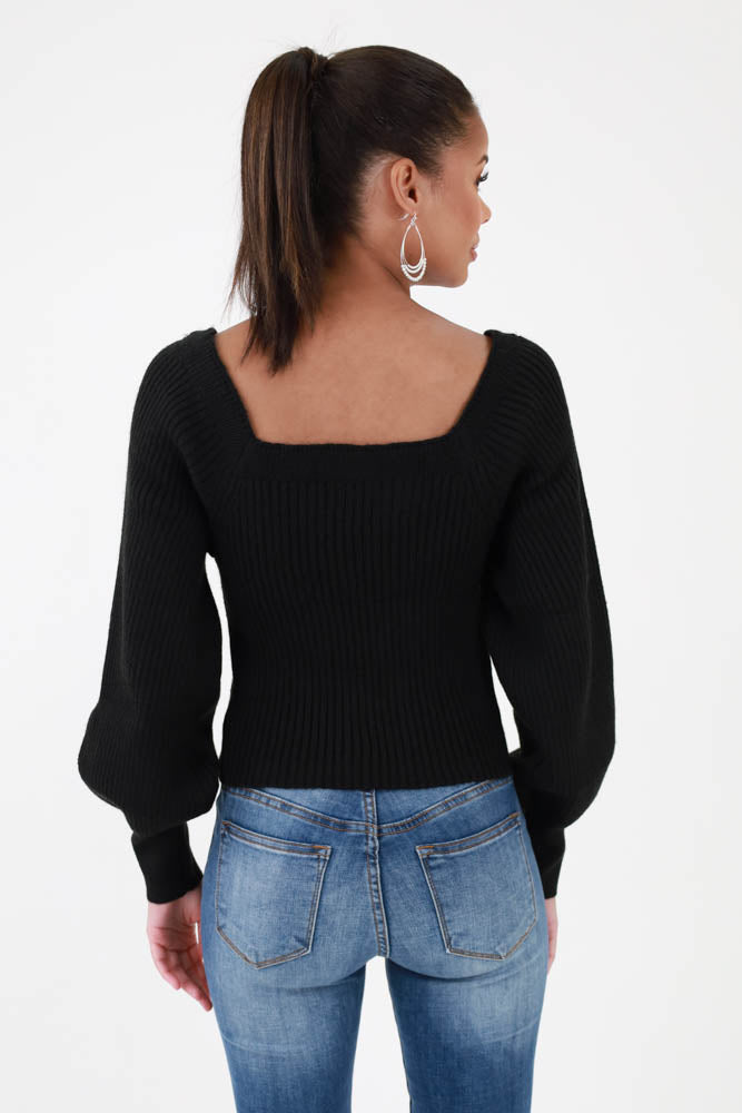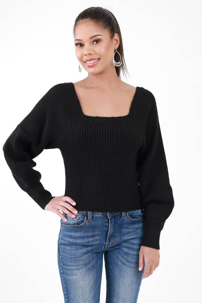 Sweetheart Ribbed Knit Sweater -Black