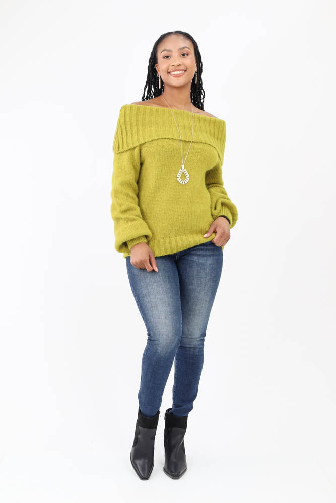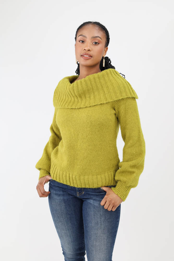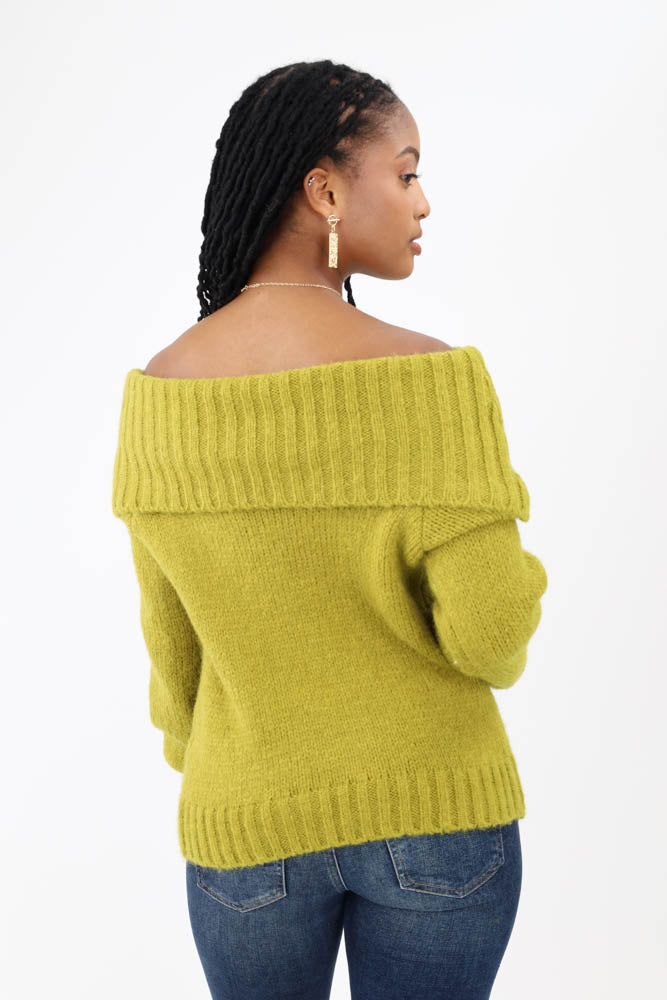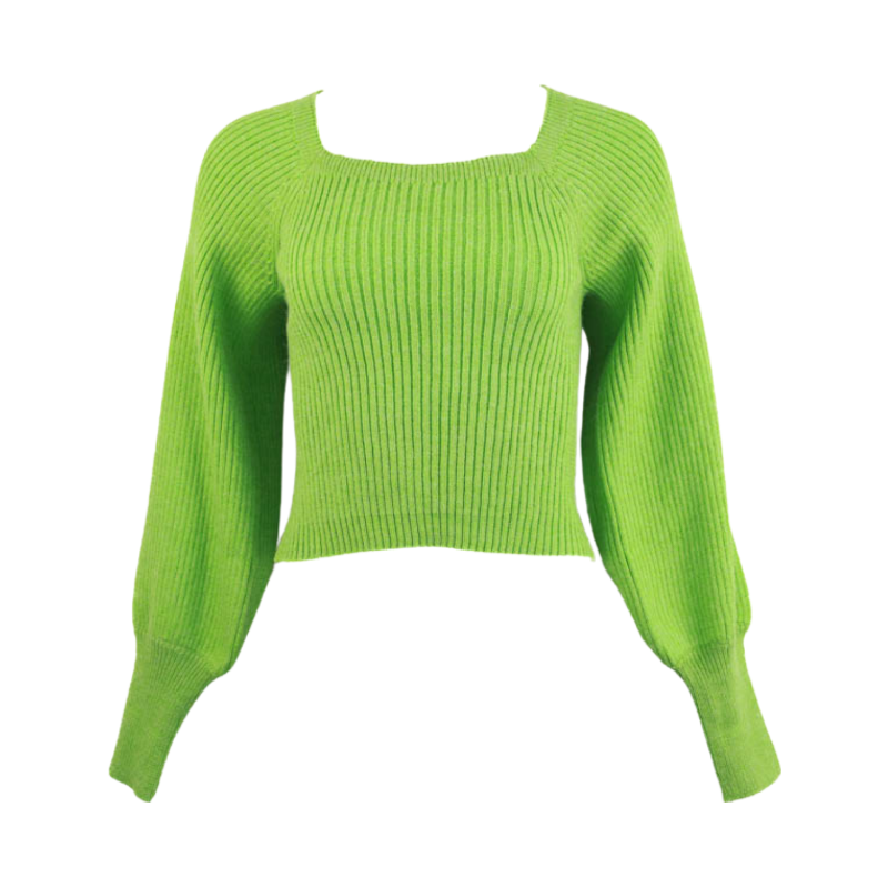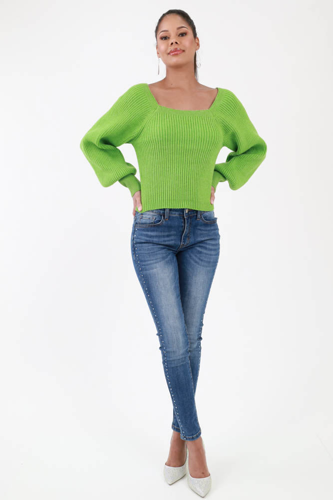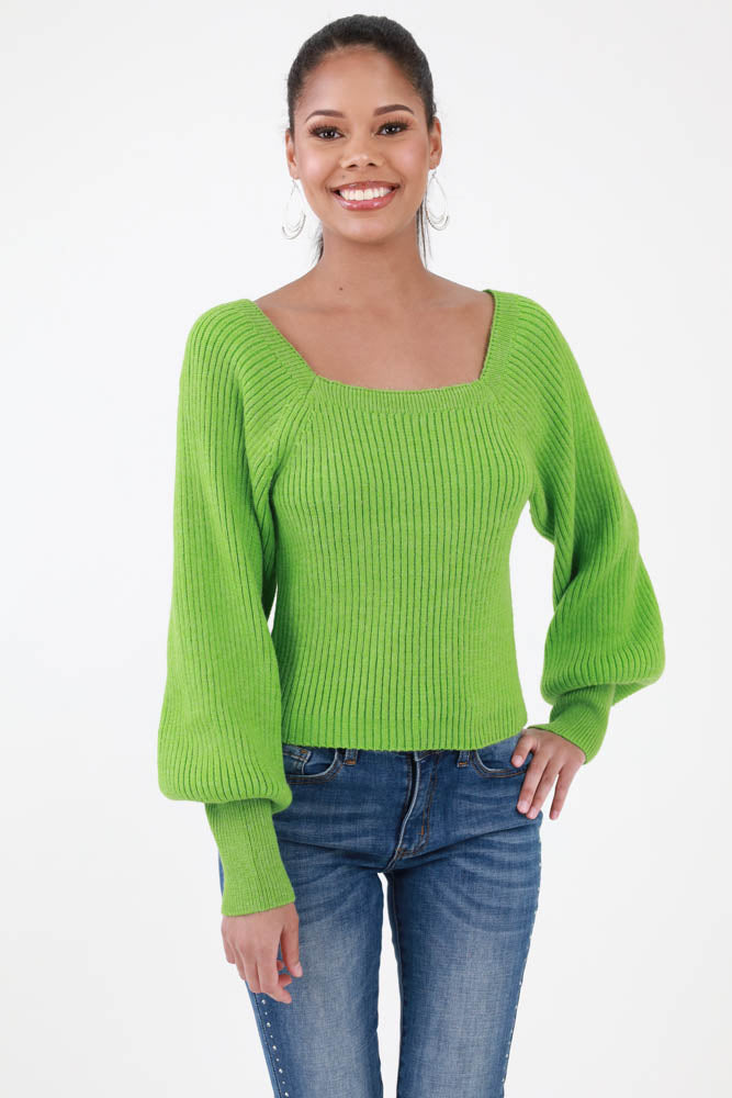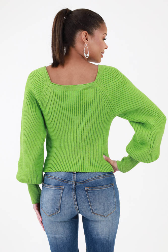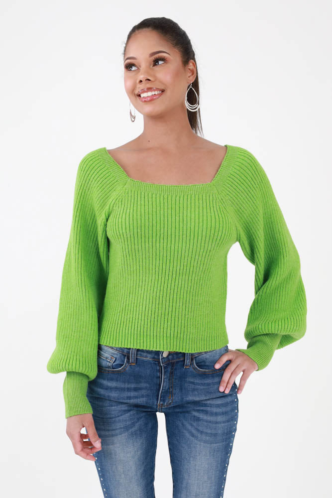 Sweetheart Ribbed Knit Sweater -Green