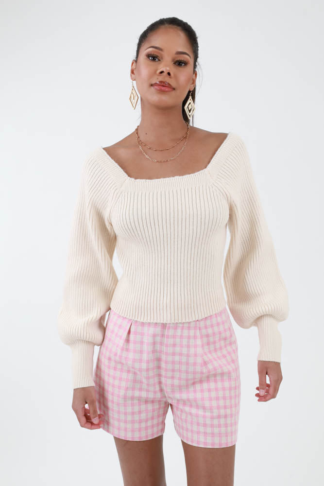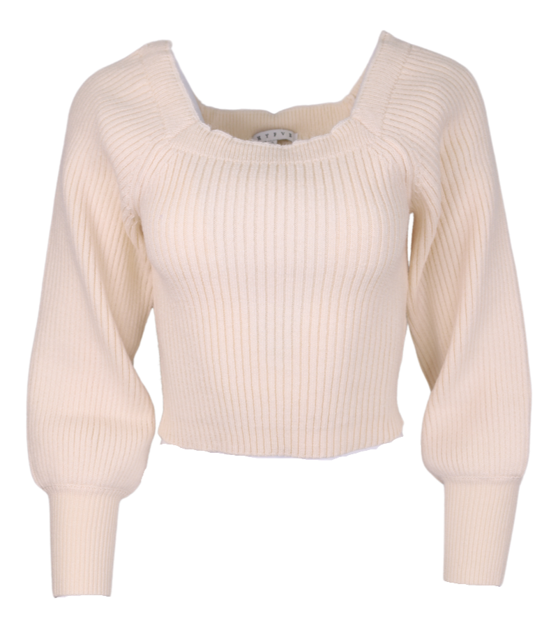 Sweetheart Ribbed Knit Sweater -Off White