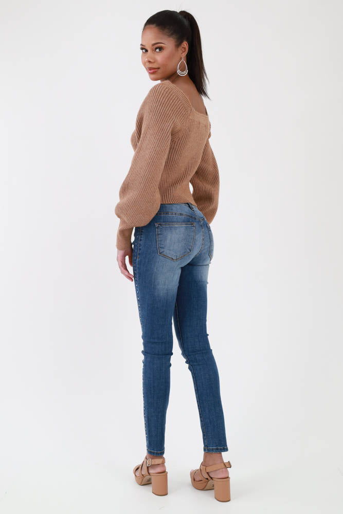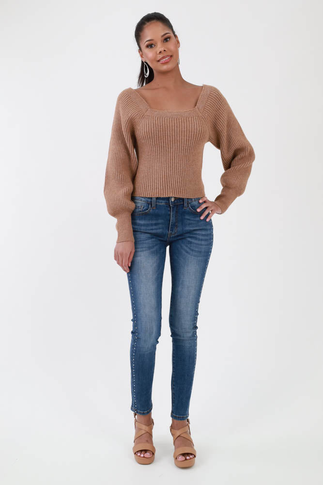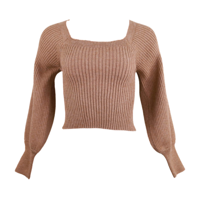 Sweetheart Ribbed Knit Sweater -Taupe