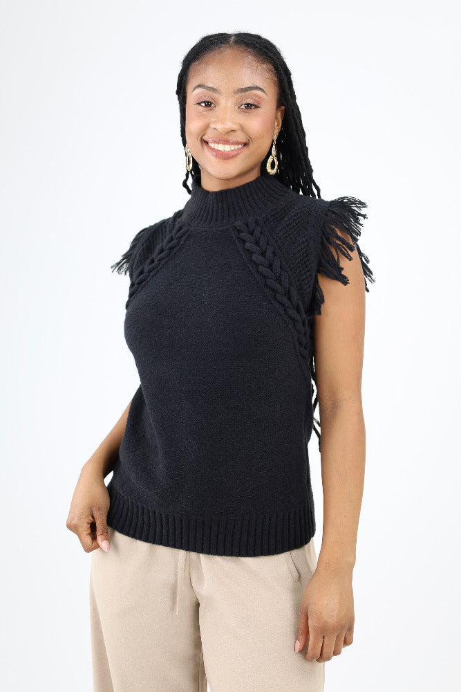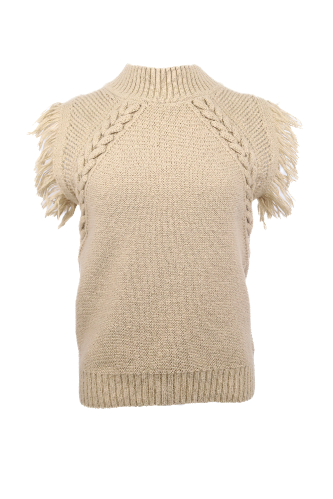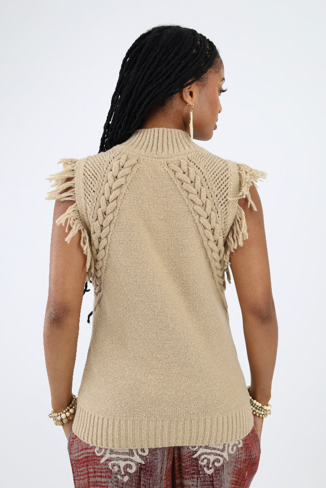 Cable Knit Fringe Sweater Vest - Sand