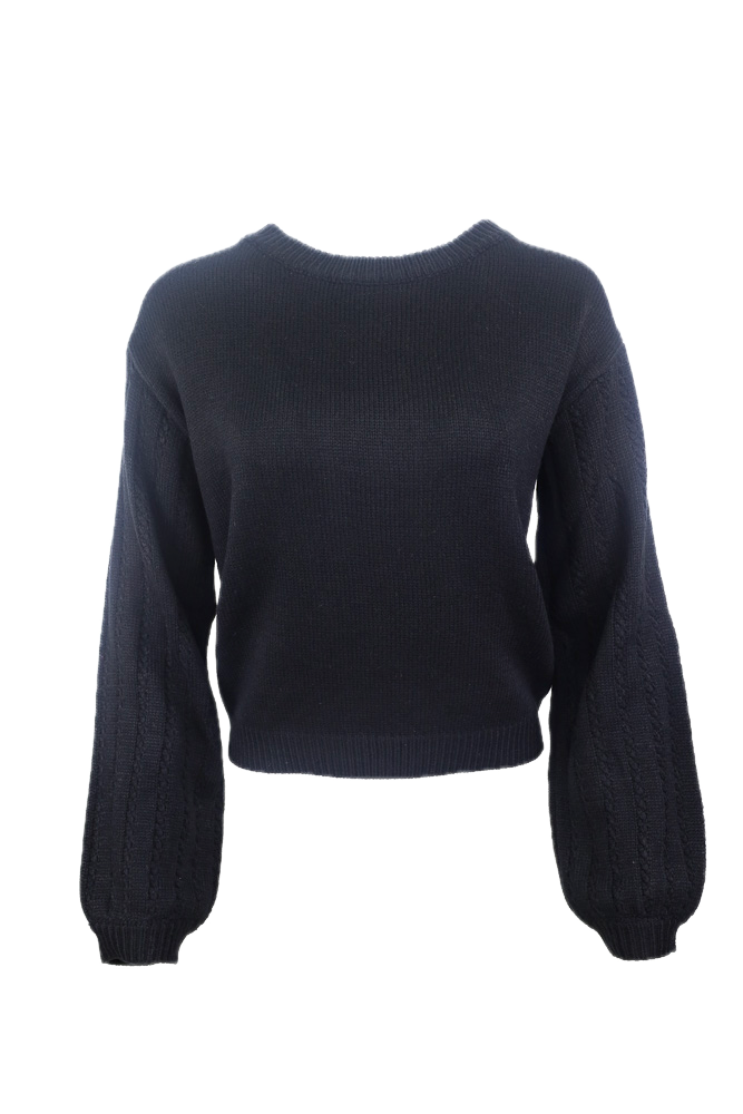 Tie-Back Cable Knit Detailed Sweater -Black