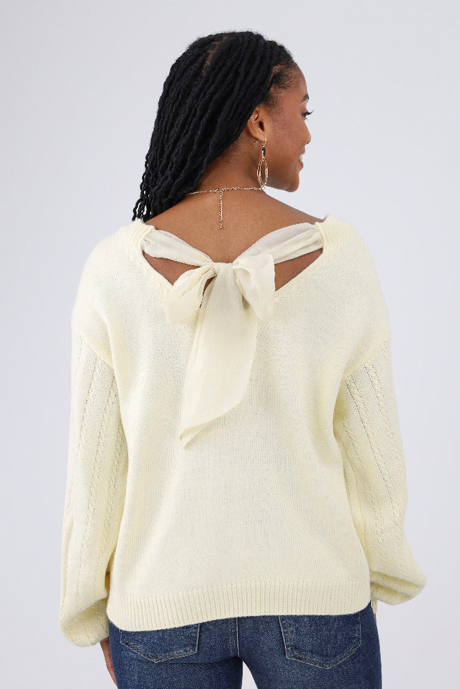 Tie-Back Cable Knit Detailed Sweater -Cream