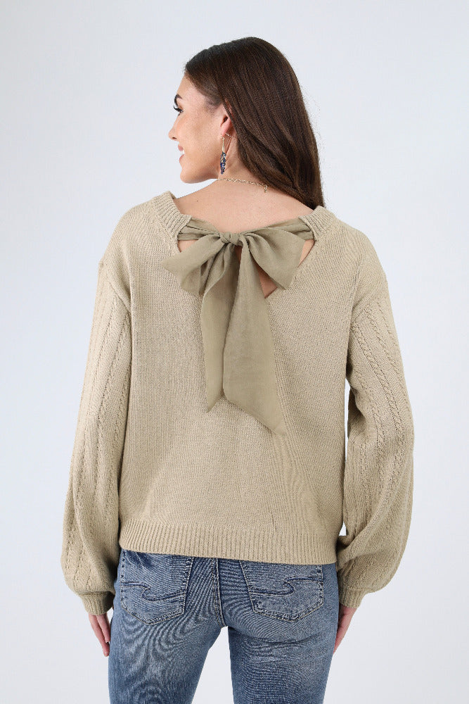 Square Neck Tie Back Sweater -Taupe