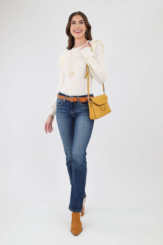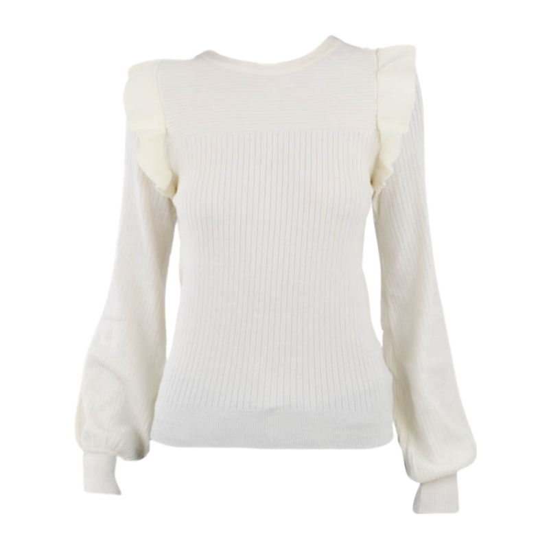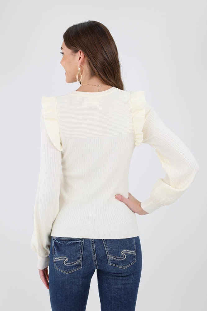 Shoulder Ruffle Crew Neck Sweater -Ivory