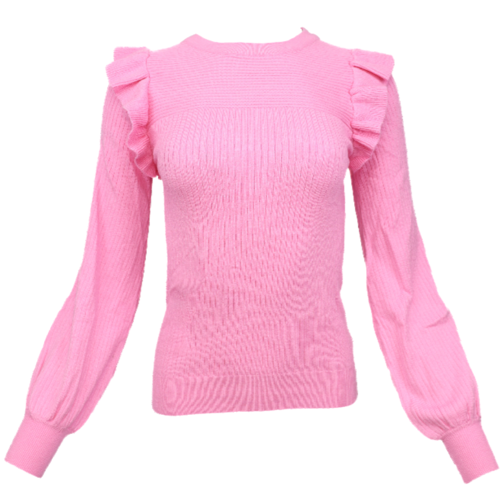 Shoulder Ruffle Crew Neck Sweater -Pink