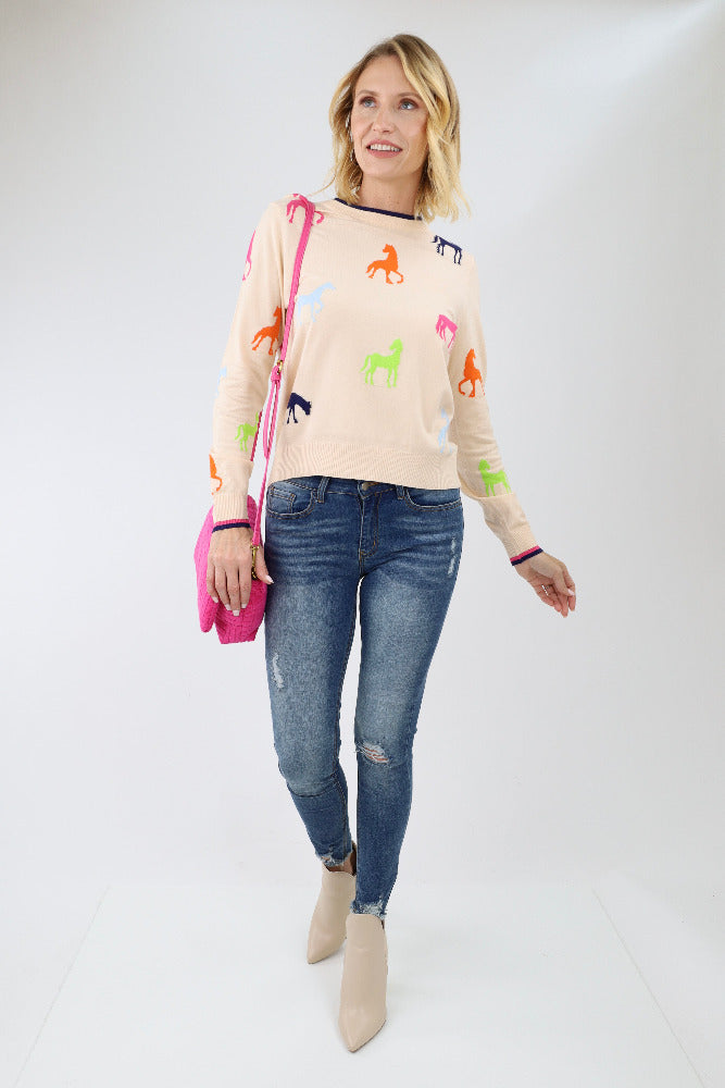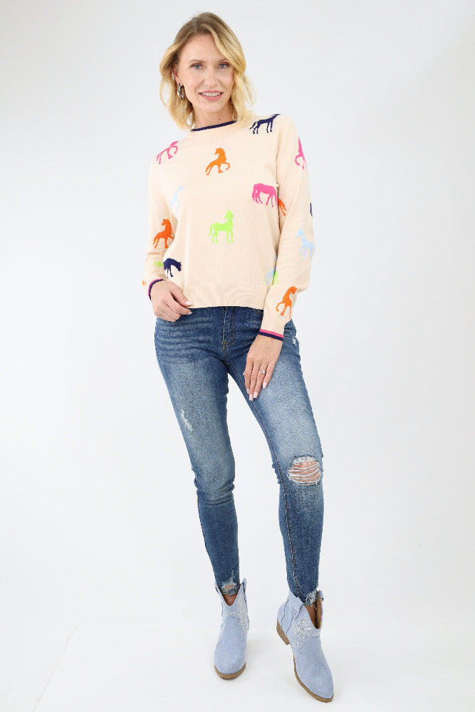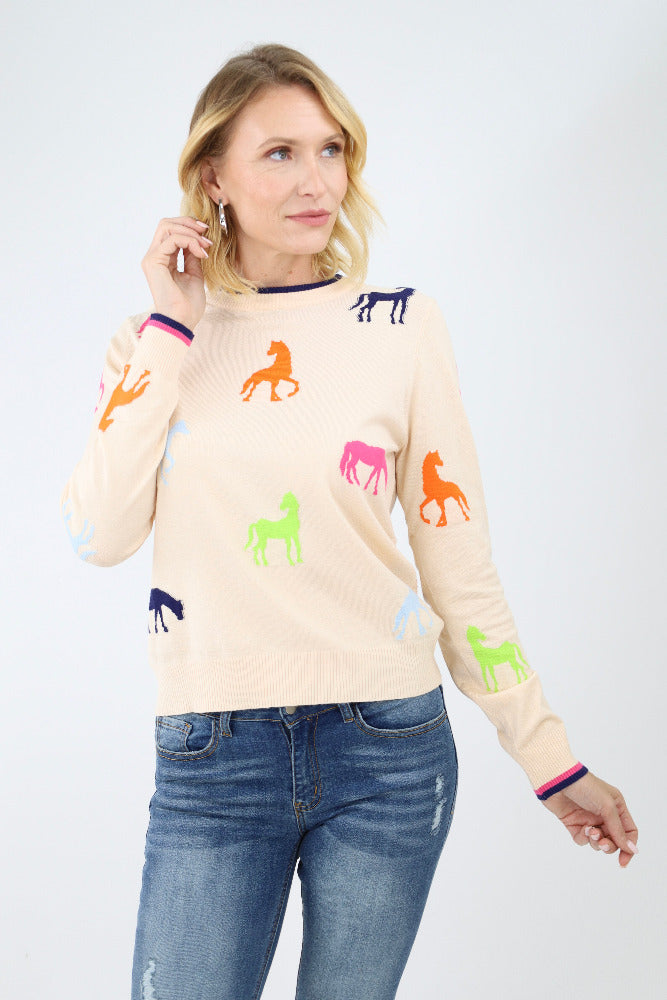 Wild Side Horse Sweater - Cream