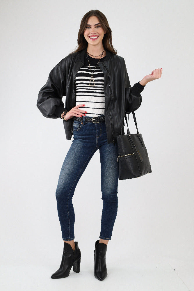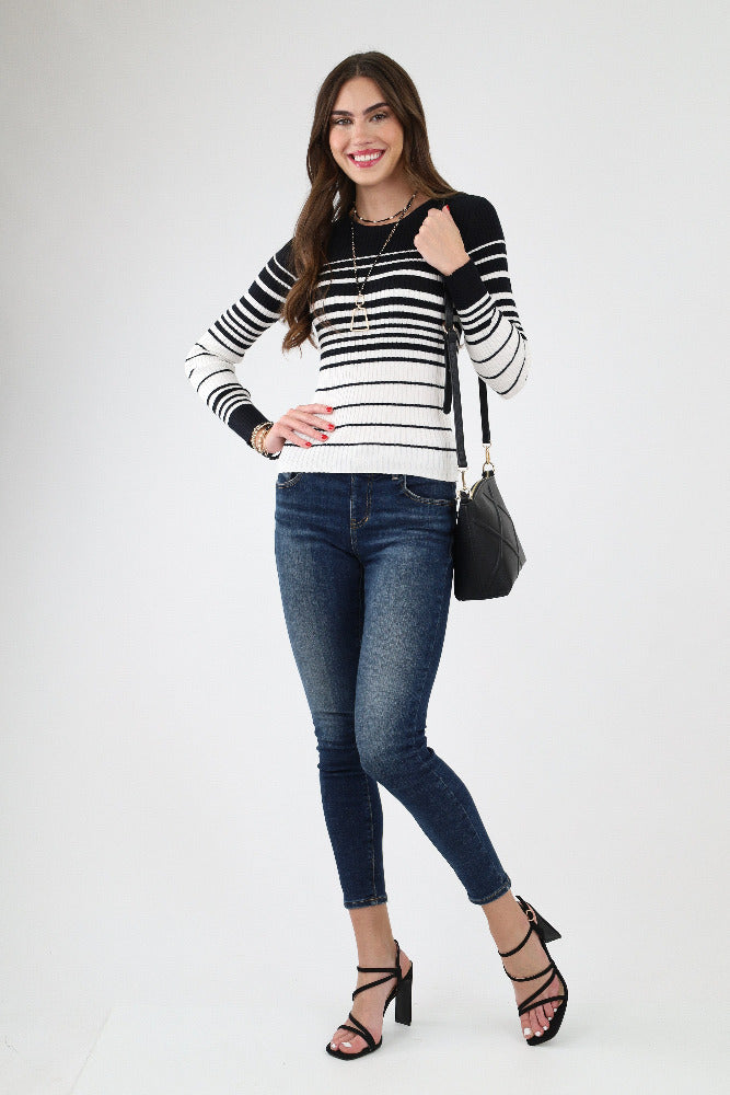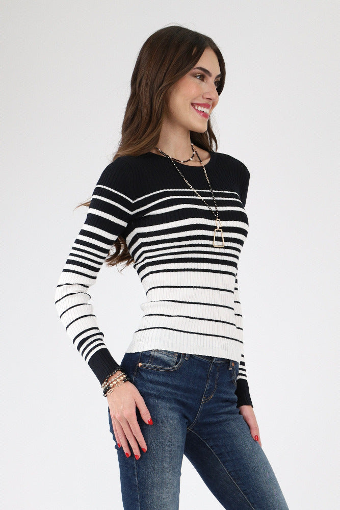 Long Sleeve Striped Knit Sweater - Black