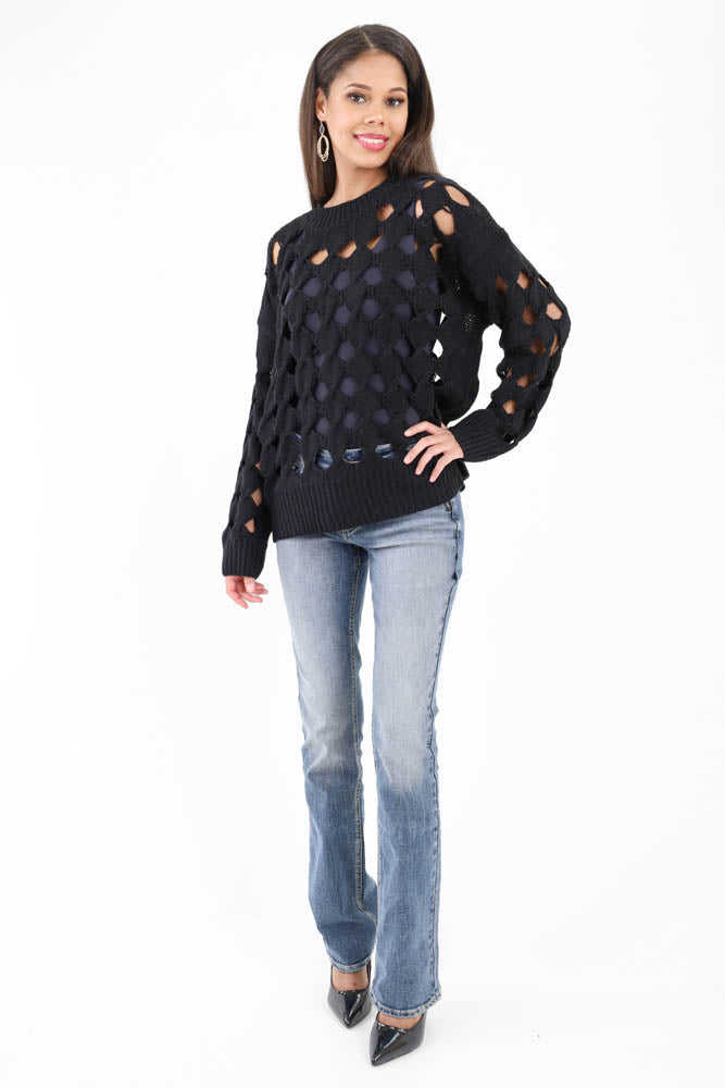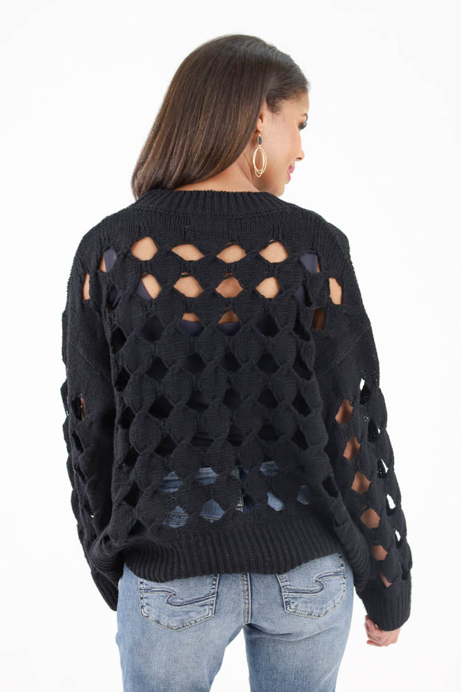 When it comes to styling your way to utter perfection, you can never go wrong with this chic sweater! It's designed with open-stitch cutouts that create an eye-catching look, while featuring a crew neck, drop shoulders, and long sleeves for a trendy and comfortable ensemble.