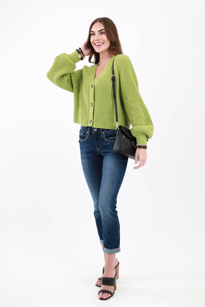 Raglan Sleeve Ribbed Cardigan Sweater -Olive